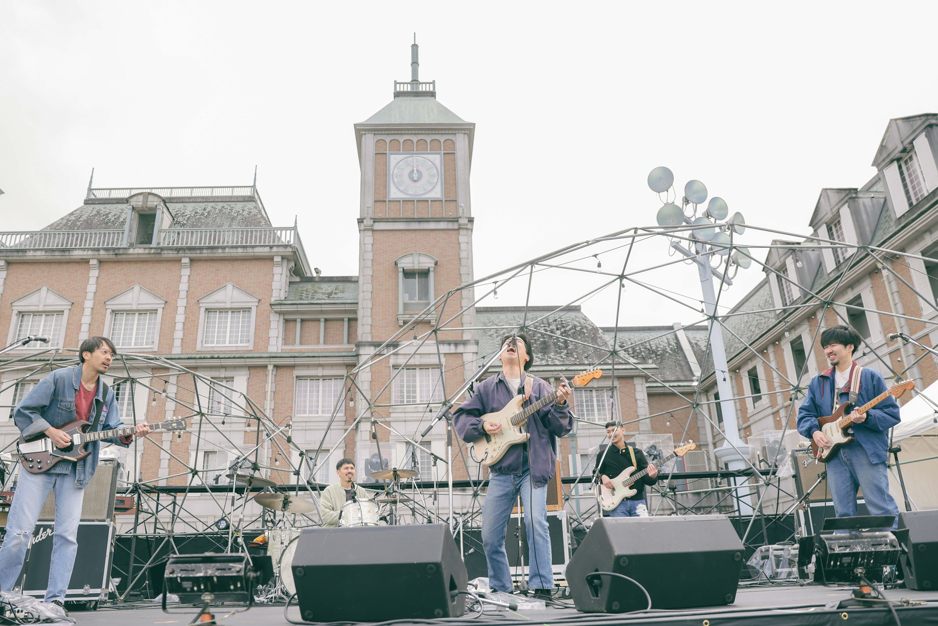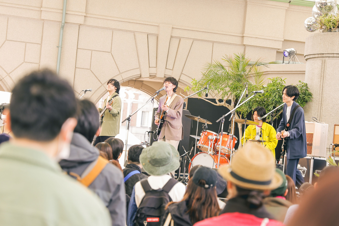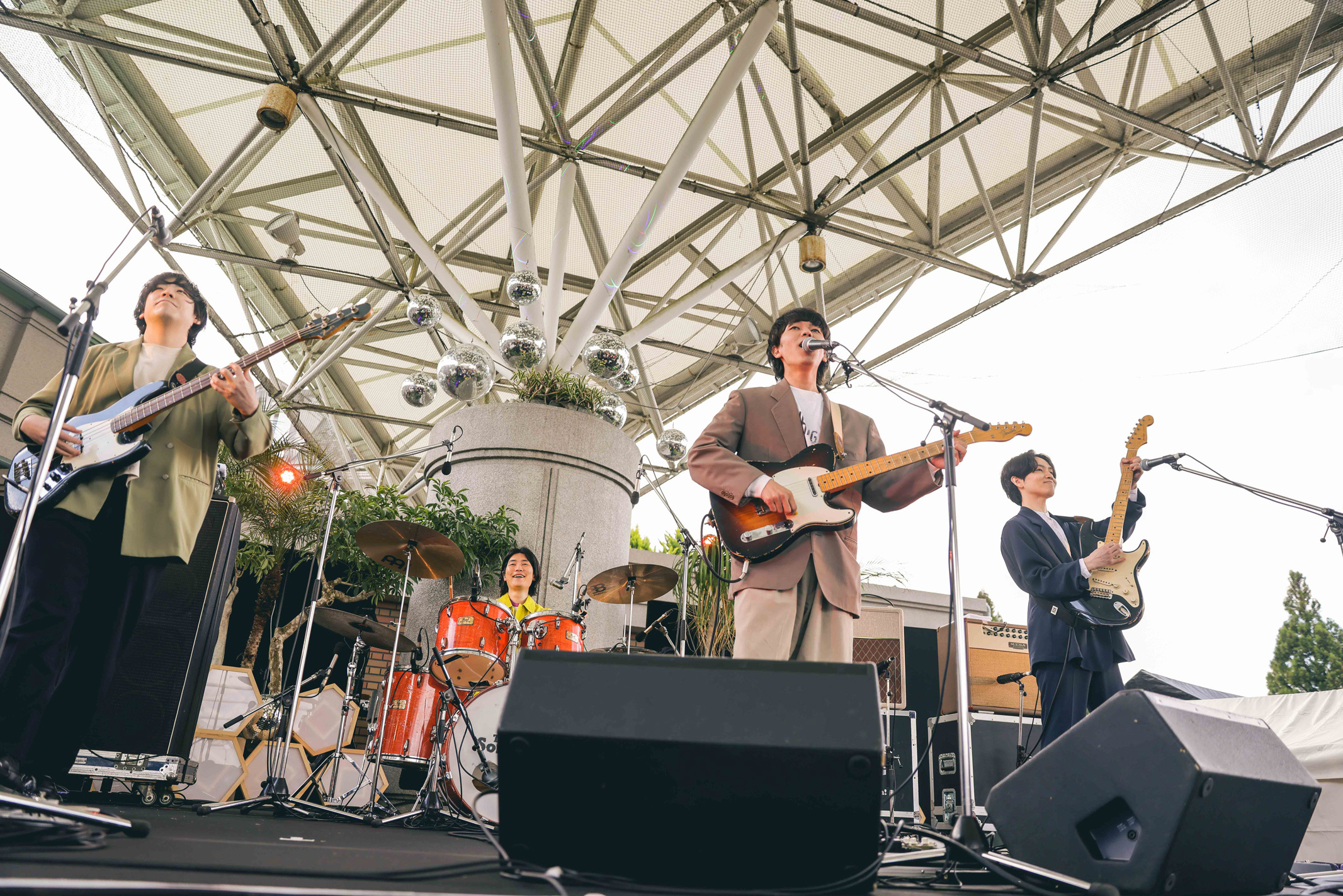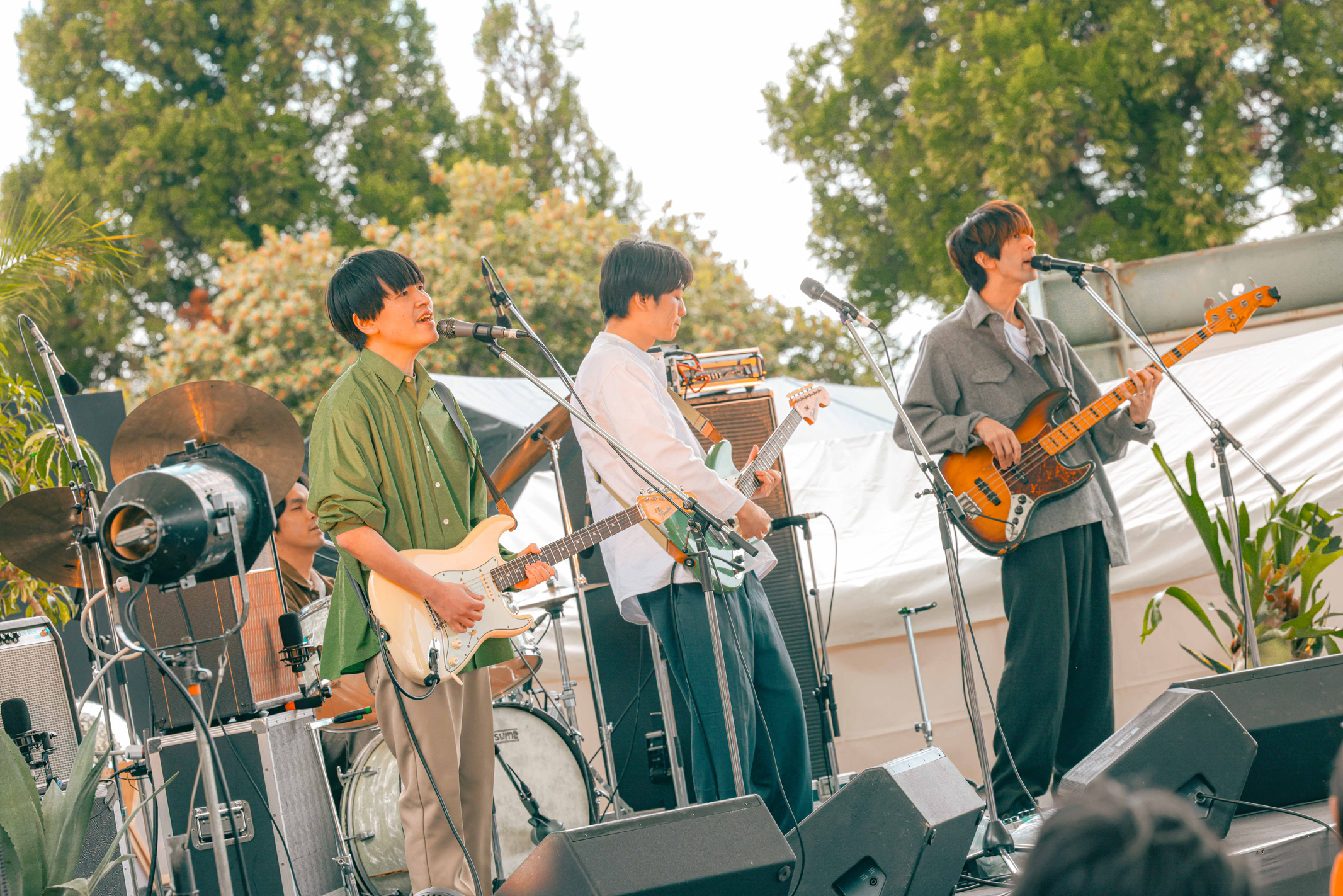 朝早くから多くの観客が詰めかけていた、FRUITS STAGE。今か今かと開演が待たれる中、地元神戸のThe Songbardsが登場。イベントの幕を開ける、1曲目は「春の香りに包まれて」。神戸に生まれた、新しい春フェスで初めて鳴らされた音が、神戸で生まれたThe Songbardsが初期の頃から歌い続けている、春の曲。会場の雰囲気、そして開催を待ち望んでいた観客の気持ちとこれ以上ないほどにぴったりで、早くもこの日が最高の1日になることを確信させてくれるような幕開けに。