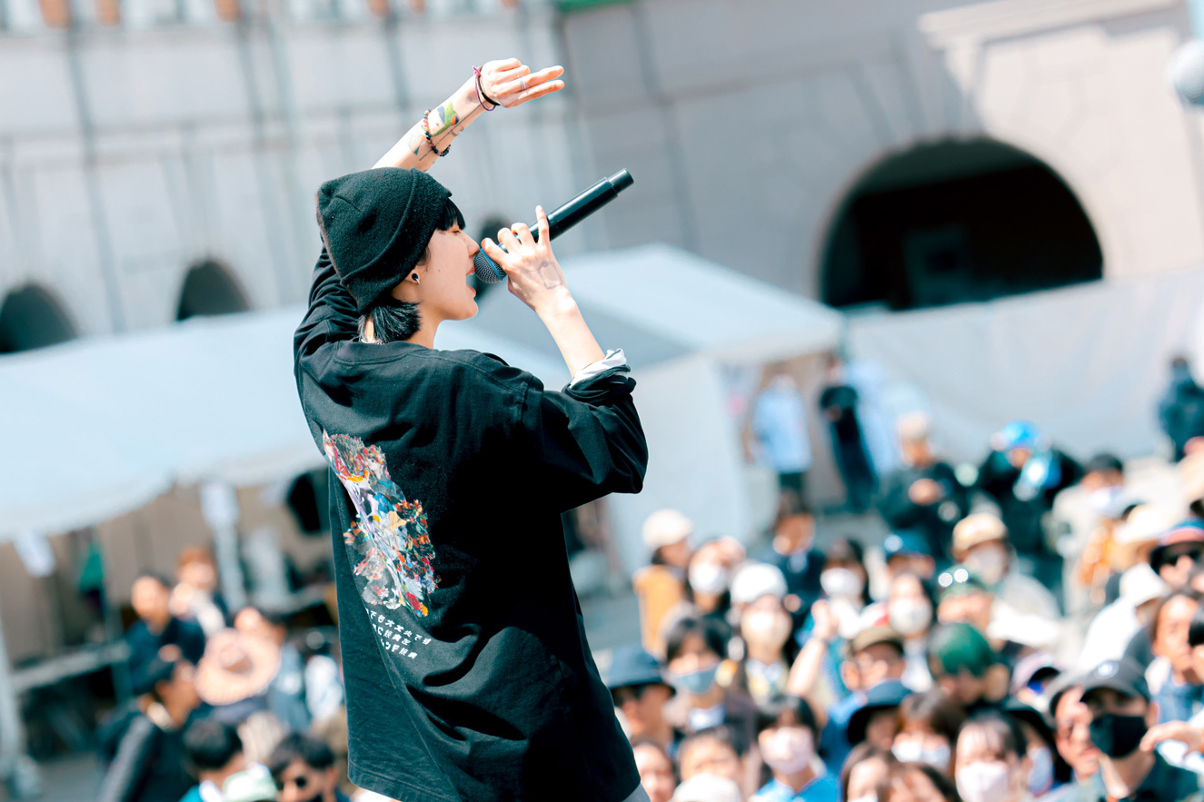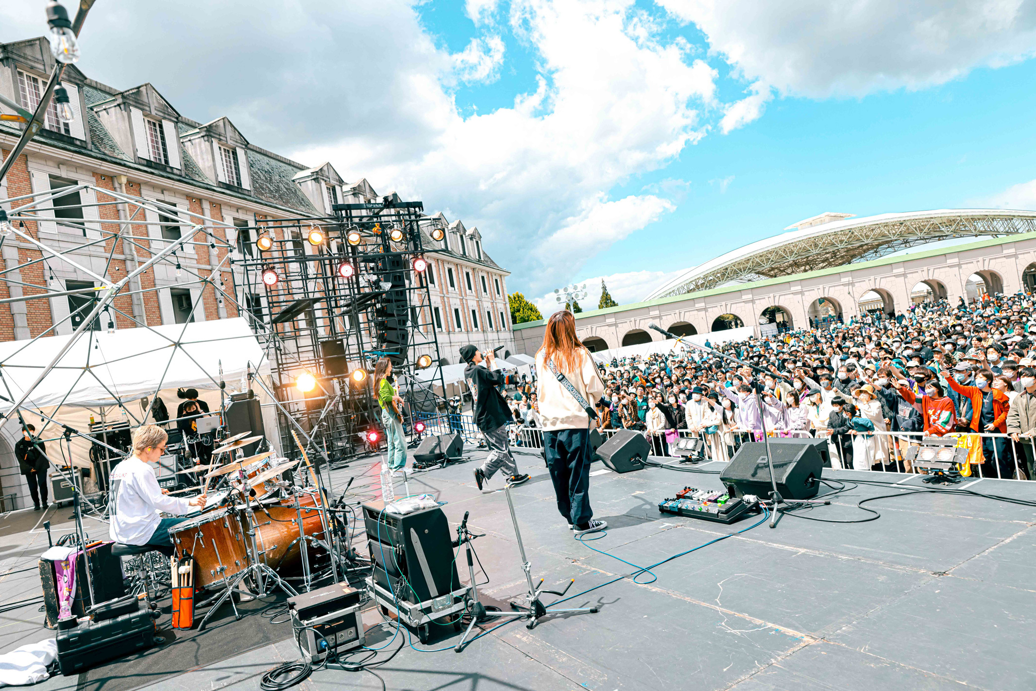会場を周遊していると、日中は太陽の光が差すとあたたかで、ぽかぽかと日向ぼっこをしながらのんびりしている人が多く見受けられた。『KOBE SONO SONO』の良さは、おひとりさまからファミリーまで、どんな人でも伸び伸びできるところだ。音楽は園内のどこにいても聴こえてくるので、疲れたらベンチに座って休むこともできるし、がっつりライブを楽しみたい時はステージの近くに行くこともできる。