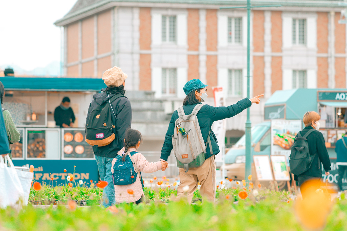 オープンと同時に、続々と来場者が園内に吸い込まれてゆく。入場ゲートをくぐった先に見えてくるのは飲食店のテント。出店しているのは、地元神戸や兵庫県内で人気のお店ばかり。どのお店もこの日のために特別に準備をしてくれたそうだ。カレー、ピザ、たこ焼き、まぜそば、リゾット、焼き菓子などなど、様々なジャンルのフードがずらり。オシャレで、見ているだけでもワクワクする。