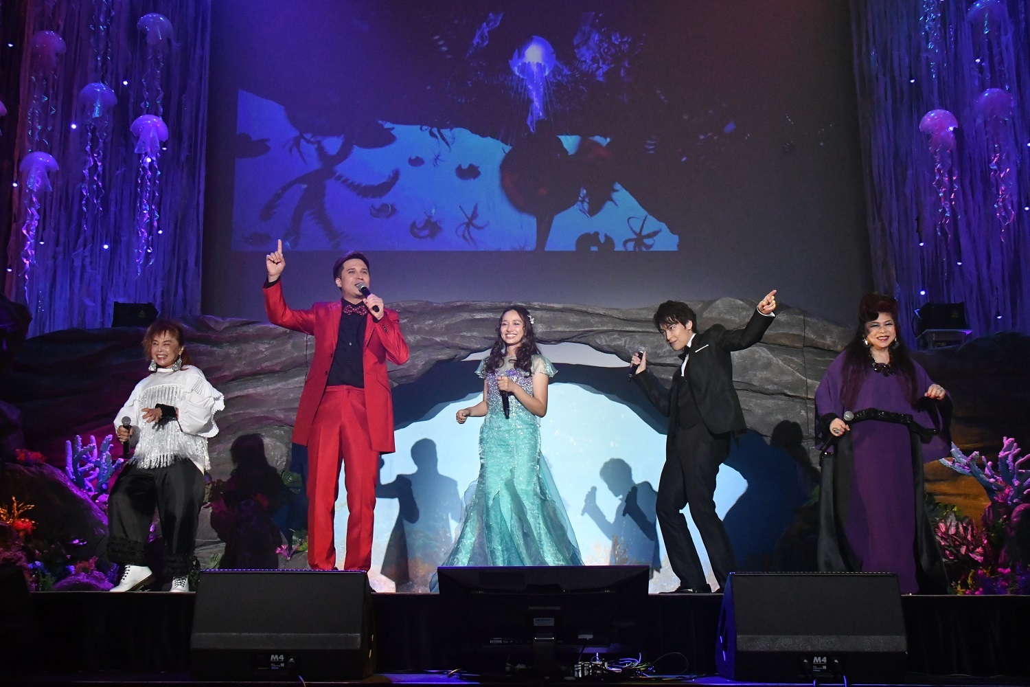 アリエルを言葉巧みに誘惑する海の魔女・アースラ役の浦嶋りんこは、「哀れな人々」を妖艶に歌い上げる。さらに、海の王トリトンに仕える執事長・セバスチャン役の木村昴と、陽気で騒がしい目立ちたがり屋・スカットル役の高乃麗が、アニメーション版でもお馴染みの「キス・ザ・ガール」を息ピッタリにデュエット。世界中で愛され続けている人気楽曲から、実写版で誕生する新曲まで、生歌でのステージを堪能した観客からは笑顔がこぼれていた。