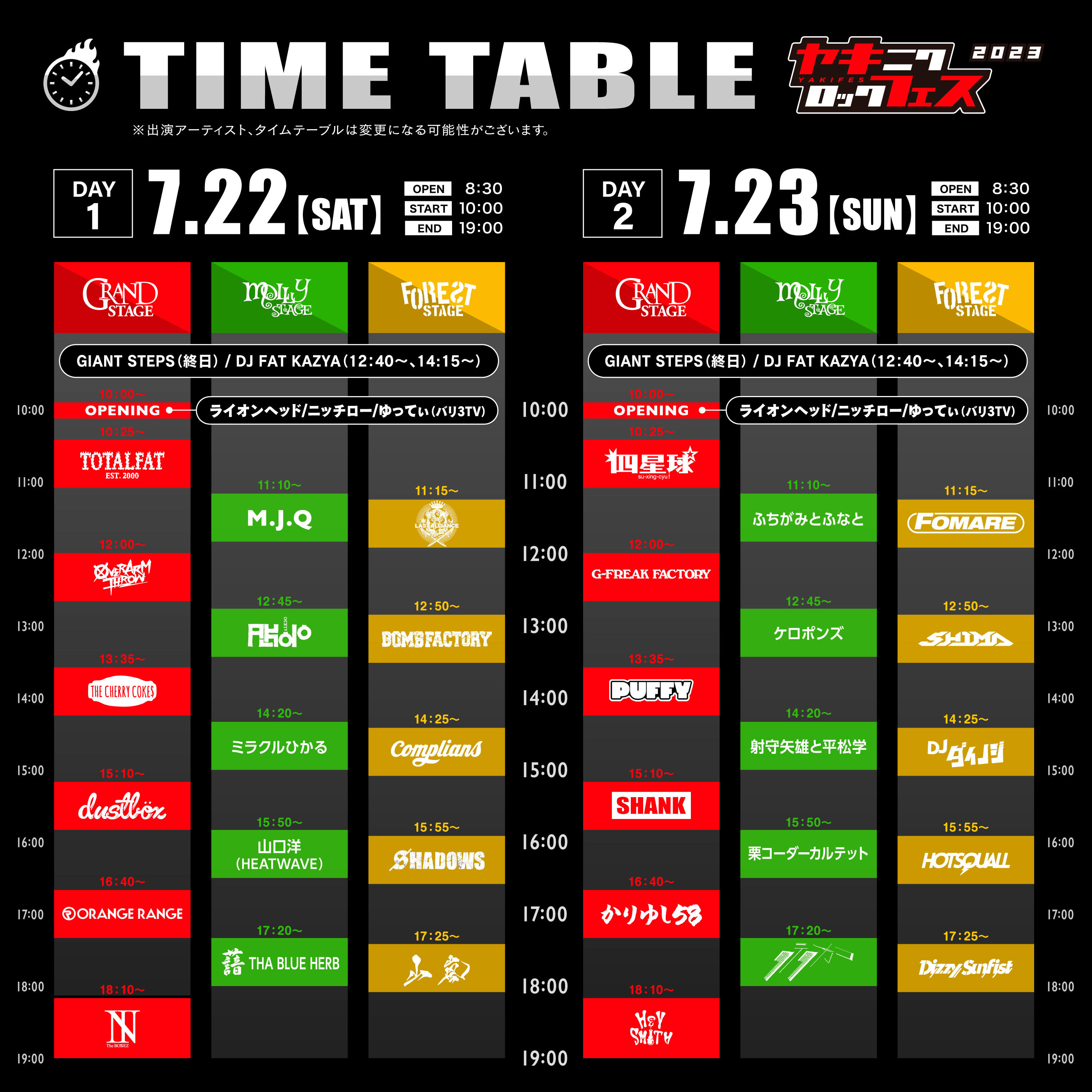 2023年7月22日(土)、23日(日)の2日間、長野県・飯田市野底山森林公園特設ステージで開催される音楽フェス『焼來肉ロックフェス2023』(通称「ヤキフェス」)のタイムテーブルが発表された。