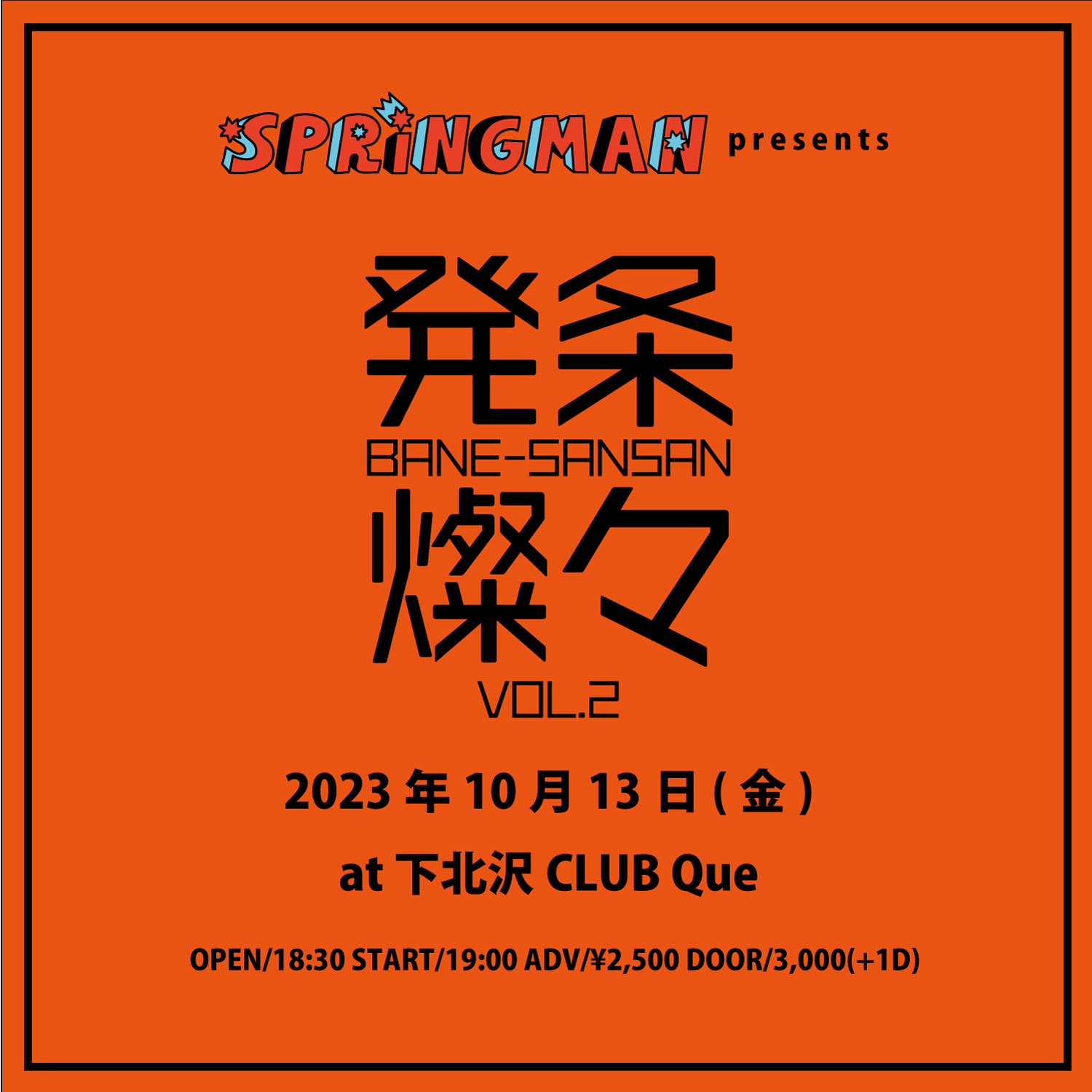 さらに、自主企画ライブ『発条燦々vol.2』を10月13日(金)に下北沢CLUB Queで開催することも決定した。ゲストは後日発表され、チケット一次先行は本日21:30から受付スタートとなる。
