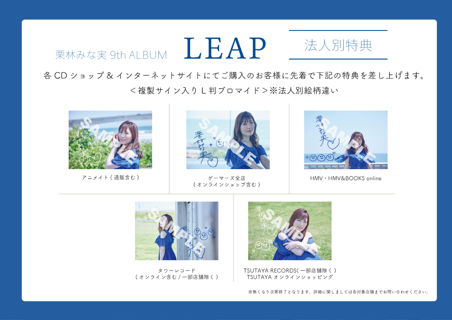 5年ぶり9枚目のアルバムとなる『LEAP』には、栗林本人が全曲の作詞・作曲を担当した全10曲を収録。栗林の「遠くまで羽ばたいていきたい」という気持ちを歌うリード曲「LEAP」や、約10年ぶりのタッグとなるGRANRODEO・飯塚昌明が編曲を手掛けた楽曲などが収められる予定だ。
