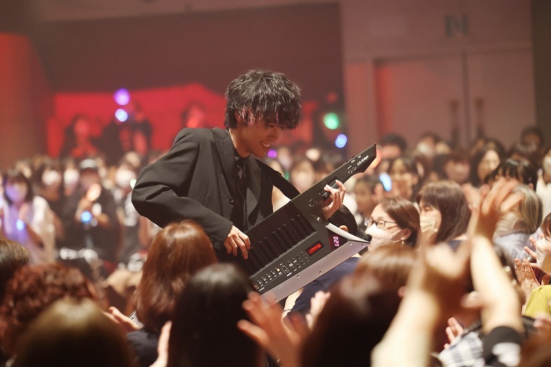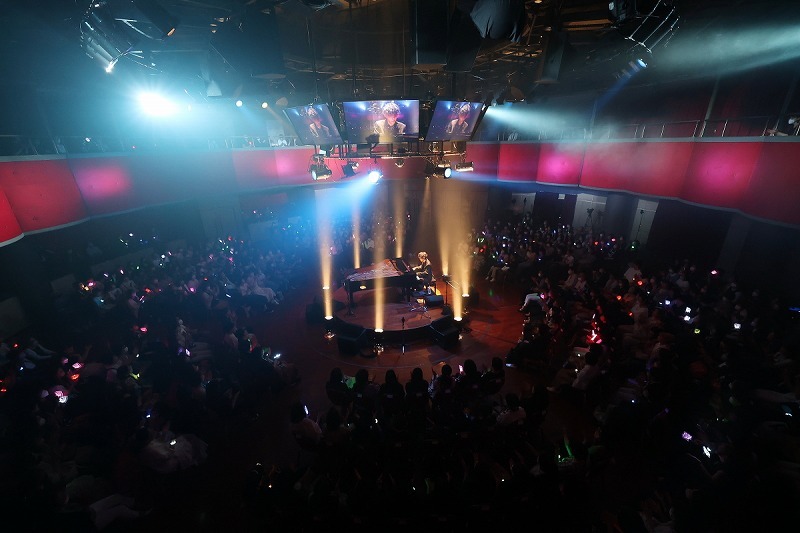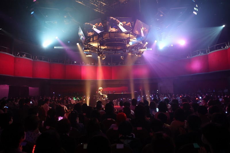 今回のライブはバンドスタイルではなく、ピアノプレイの魅力を最大限伝える為、会場の中央に円形のセンターステージを設け、そのステージ上に1台のピアノが配置されていた。大きな歓声を浴びながらセンターステージに登壇したけいちゃんはALBUM『殻落箱』に収録され、YouTubeでのMV再生数が140万回以上を記録する「√Future」からライブをスタートさせる。ライブは各パートでクラシック、ジャズ、ポップス、そしてオリジナルと別れており、其々の音楽を超絶的な鍵盤さばきで華麗にプレイしていく。NEW ALBUM『聴十戯画』が“インストゥルメンタル作品の新たな可能性を提示し、ジャンルの枠組みを超越した異次元の作品”と評されたのも納得のピアノプレイであり、会場と観衆をピアノの音色で掌握し、全てを一体化して包み込んでいく。