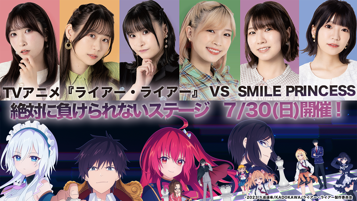 TVアニメ『ライアー・ライアー』は7月8日(土)からTOKYO MX、BS朝日ほかにて放送が開始される7月アニメ。当日は、キャストによるトークや、エンディング主題歌「fakey merry game」を歌唱するSMILE PRINCESSのライブパフォーマンスが予定されている。
