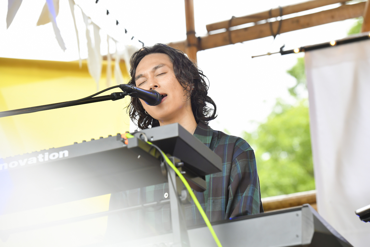 ガラッと雰囲気が変わり、爽やかなピアノバンドサウンドを弾ませたのはOmoinotake。鍵盤、ベース、ドラムの3ピースにホーンを加えた編成で、ソウルやシティポップへの愛と造詣を感じる音を、繊細に、けれどパワフルに演奏していく。シーケンスやシンセベースも用いているものの、あまりクールにはなりすぎずあたたかなグルーヴを感じる音、そして抜けの良いレオ(Vo/Key)のハイトーンボイスが気持ち良い。「最高の野外ライブ日和じゃないですか!」と喜びを分かち合いながら、「心音」のようなバラードソングから「産声」や「EVERBLUE」といったダンサブルなナンバーまで、持ち時間に目一杯曲を詰め込んで、鮮やかな印象を残していった。