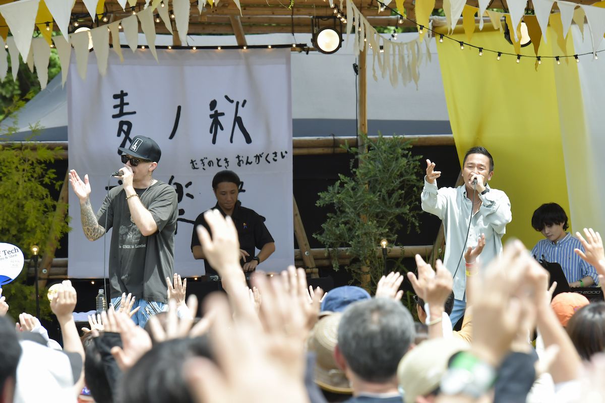 前日を上回る大勢の観客たちの拍手喝采に包まれ、2組目のDef Techが登場。英詞と日本語詞を織り交ぜながらそれを抜群のハーモニーで届けていくShenとMicroの2MCスタイルは、強固なオリジナリティを有すると同時に、あらゆるリスナーの耳にすっと馴染んでいく普遍性も備えている。レゲエやポップス、R&Bなどのミクスチャーサウンドが爽やかに場内を堤、「My Way」や「Catch The Wave」といった大ヒット曲はどこか清涼な質感で、暑いくらいの気候にもベストマッチ。終盤には「また来年も呼んでいただけますでしょうか?」という逆オファーまで飛び出し、「Irie Got~ありがとうの詩~」でのシンガロングでライブを締めくくった。