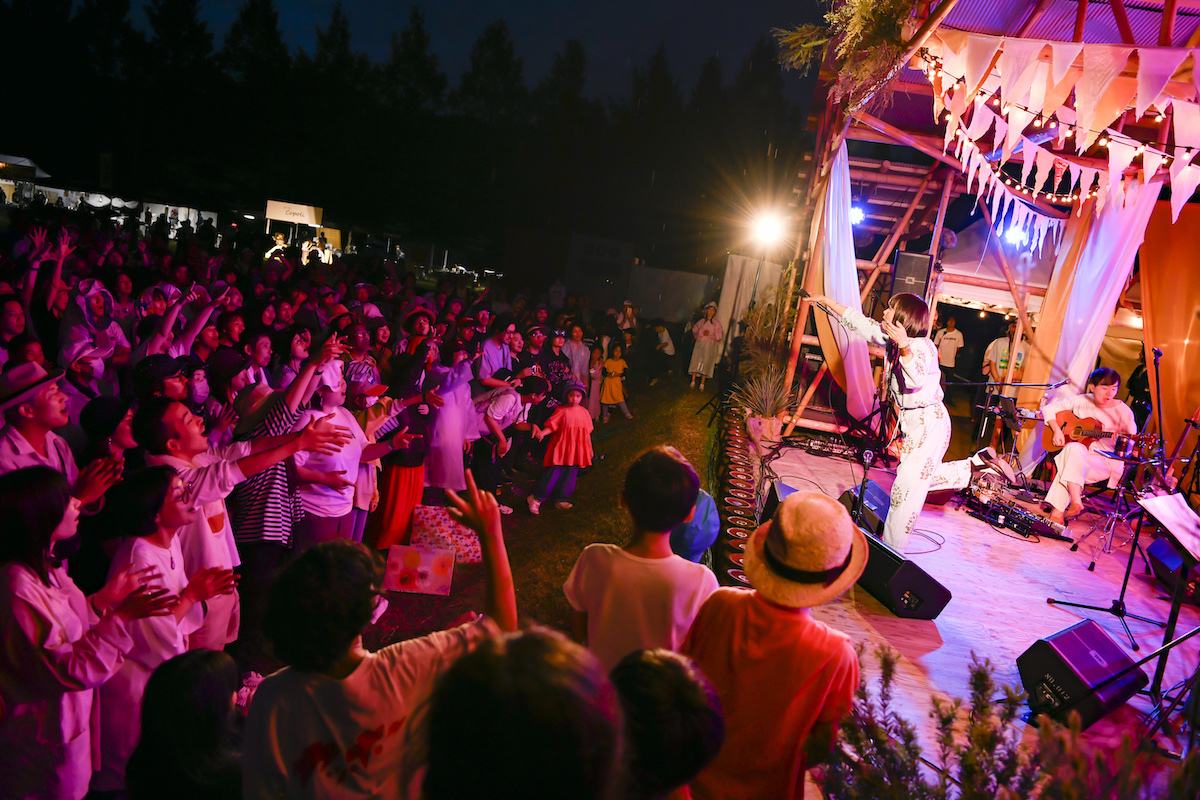 なんせ、彼女から発せられる音全てが──歌声だけでなくスキャットや、南国の生き物の鳴き声のようなフェイクも──環境音のように場に溶けていくのだ。いやぁ、こんなライブは滅多にお目にかかれない。辺りが暗くなり照明が映えるようになった頃、「情熱」からの「ミルクティー」で最高潮を迎え終演。アンコールで披露した「水色」の、アカペラから始まる子守唄のようなやさしい歌とともに、『麦ノ秋音楽祭2023』は静かに幕を下ろした。