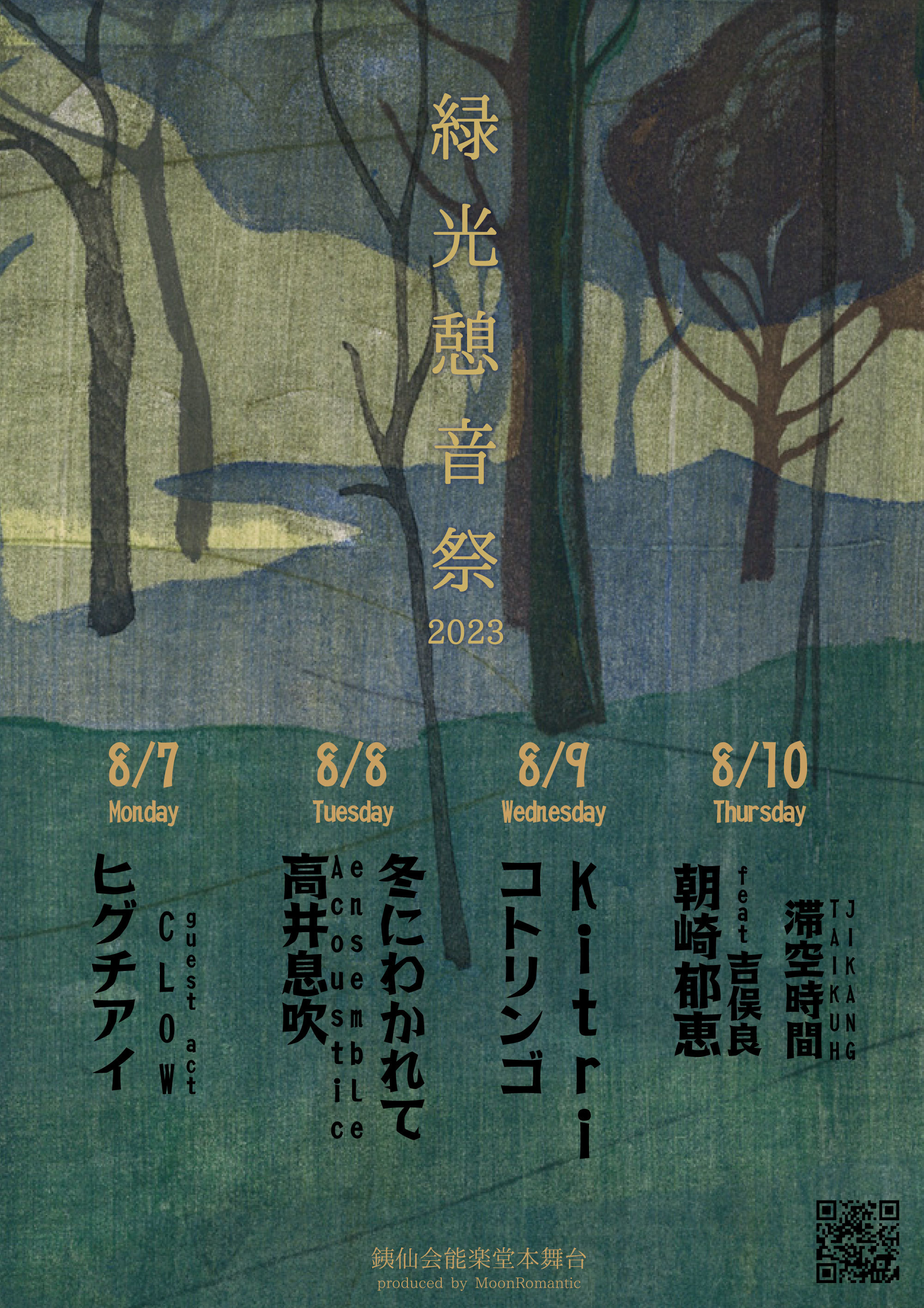 能楽堂を使ったアコースティック音楽イベント『緑光憩音(りょっこういくおん)』が8月7日(月)から8月10日(木)までの4日間にわたって、青山銕仙会能楽堂にて開催されることが発表された。今回はグランドピアノを搬入して行うスペシャルバージョンになる。