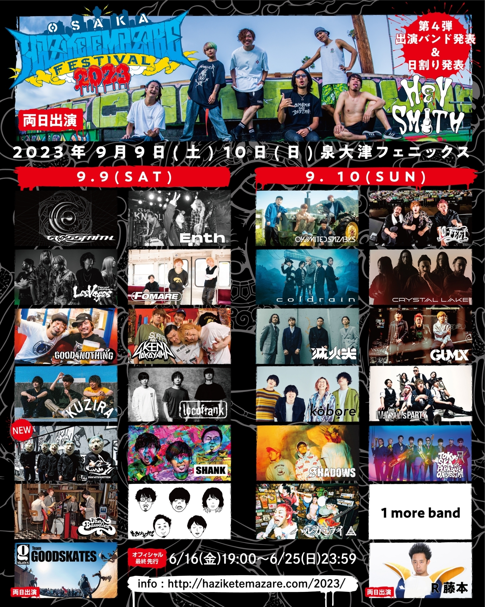 9月9日(土)~ 10日(日)に大阪・泉大津フェニックスにて開催される、HEY-SMITHが主催するライブイベント『OSAKA HAZIKETEMAZARE FESTIVAL 2023』の第4弾出演アーティストとしてMAN WITH A MISSIONの出演が決定。合わせて、各アーティストの日割りが発表された。