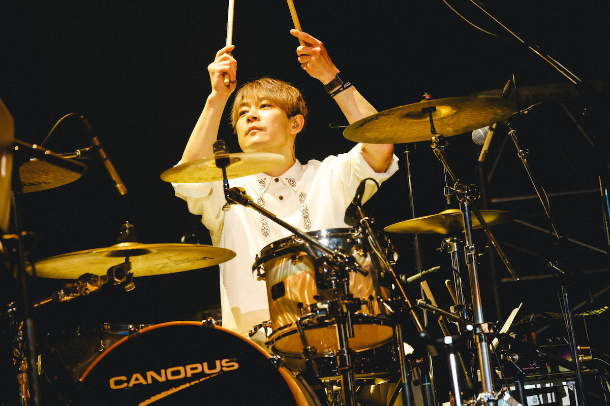 「いつも僕たちのそばに寄り添ってくれて、苦しい時に助けてくれた皆に贈りたい曲です」との紹介から「HELP」へ。ファンの熱い手拍子が刻むリズムに支えられるようにして歌い出す山村。阪井、尼川のコーラスにも力がこもり、大地を踏みしめるような小倉のドラミングが頼もしい。2019年5月、活動休止から復帰を遂げたシングル曲が、今また新たな意味を帯びて聴こえてくる。これは長いキャリアを積み重ね、紆余曲折を乗り越えて来たアーティストにしか起きない現象である。終盤、目も眩むような白い光が放たれる中、ファンもシンガロング。ラストは山村、阪井、尼川と順にヴォーカルをリレーしていくライヴの人気曲「Hydrangea」で盛り上がり、熱狂の中で締め括った。