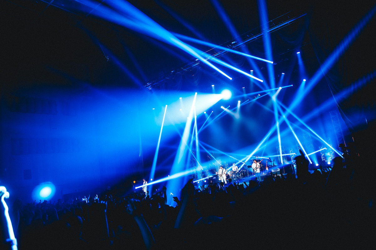 SEに乗せて登場したメンバーの白い衣装が暗闇に浮かび上がる。ステージが突如明るくなり、メンバーの姿が露わになって「NEW DAY DREAMER」が始まるとファンは大歓声。2020年5月にリリースしたオリジナルアルバム『Real』の実質的な1曲目、幕開けにふさわしいナンバーである。山村は「会いたかったぜ中野、声出して行こう!」と叫び、飛び跳ねながら生き生きと歌唱。尼川元気(Ba)と阪井は力強くコーラスを重ねていく。小倉誠司(Dr)が繰り出す四つ打ちのキック音が身体に響き、鼓動のように響き渡った。このたび久しぶりにサポートを務めるのは磯貝サイモン。眩い光の中、ライヴはエネルギッシュに滑り出していった。