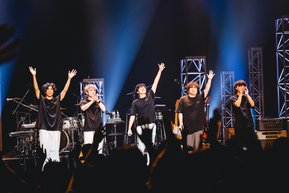 アンコールでは、メンバー全員黒のライヴTシャツに着替えて登場。コロナ禍の中で行なうこととなった『Real』ツアーを改めて回想し、山村は、その礎となったアルバム『Real』について「声を出してほしくて、皆の声を想定してワクワクしながらつくっていたアルバムなんですけれども。皆の声が聴けない中でのツアーが続いて、どこか歯がゆかったけれども……その時はその時で、タイトル通り、それが“現実(Real)”。僕らも皆もお互いにそうだし、ライヴに参加しない人も“行けない”歯がゆさとか悲しさとか、そういうものを共有できた」と想いを熱く語っていく。「だけど今日、聴けなかった皆の歓声が想像を超えていて、皆が背中を押してくれて……また新しい『Real』というアルバムが今日、完成したんじゃないかな?と思います。皆さんのお陰です、どうもありがとう!」と感謝を述べると、大きな拍手が送られた。