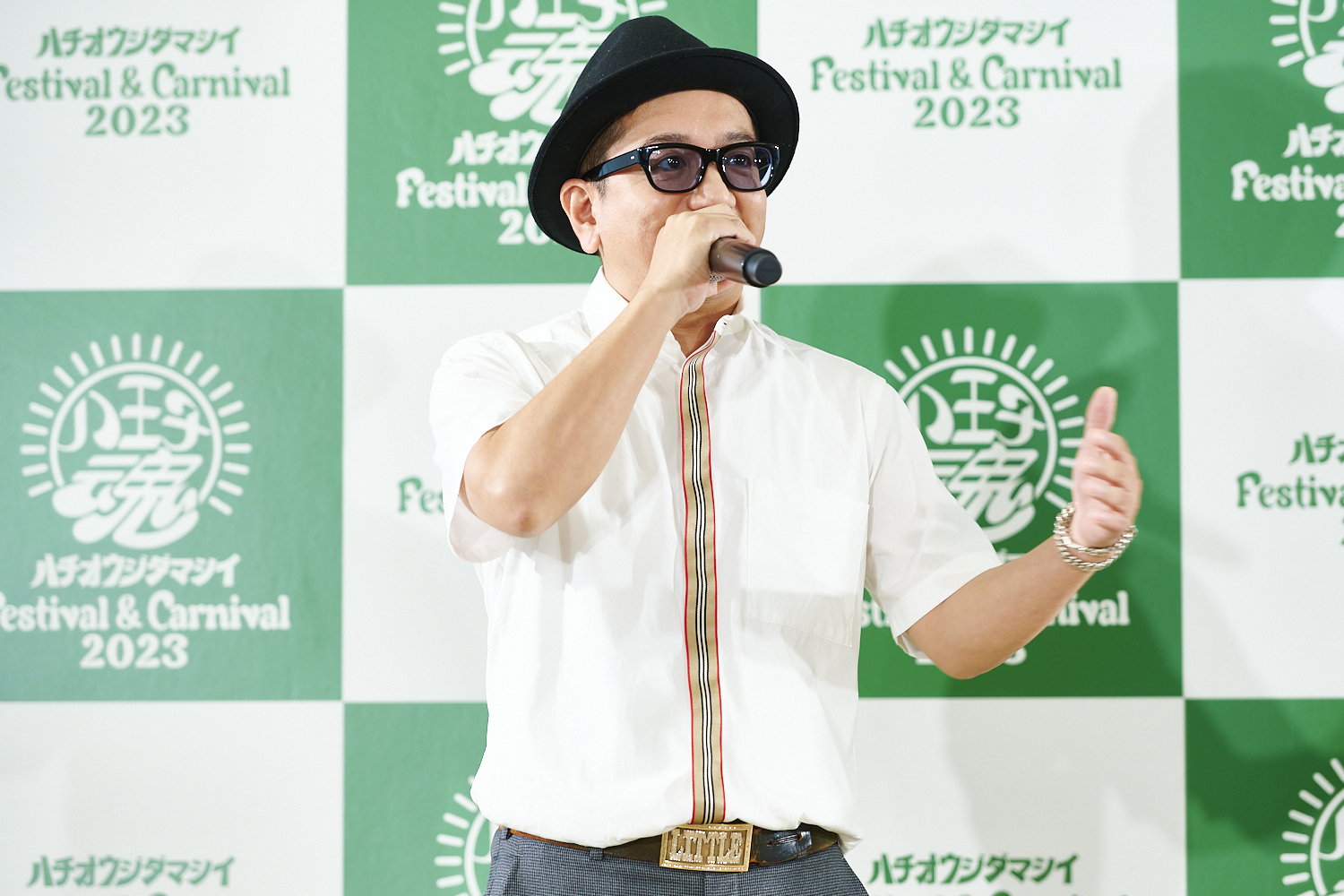 6月19日に行われた記者発表会には、フェスのアンバサダーを務めるタレントのヒロミ、アーティスト代表としてKICK THE CAN CREWのLITTLE、FUNKY MONKEY BΛBY’Sのファンキー加藤、さらに八王子市長・石森孝志、商工会を代表して「八王子を盛り上げる会」会長・樫崎博の5人が登壇。「太陽の街・八王子」をイメージしたロゴをバックに、まずは樫崎会長が「八王子が一番!」というキャッチフレーズを高らかに掲げ、続いて石森市長が「多くの方にご支援いただき、大成功となるようによろしくお願いします。私もしっかり応援していきます」と力強く宣言する。地元の協力が欠かせないフェスにとって、なんとも力強いバックアップだ。