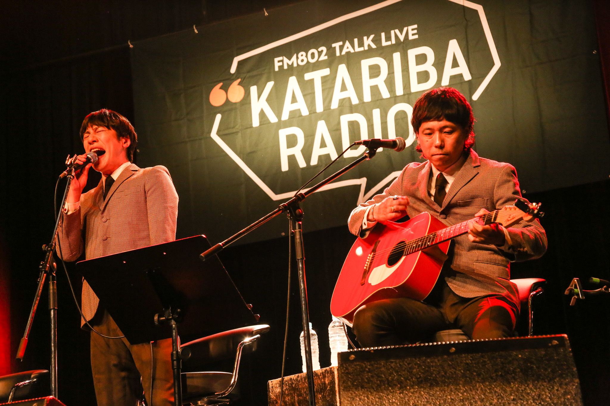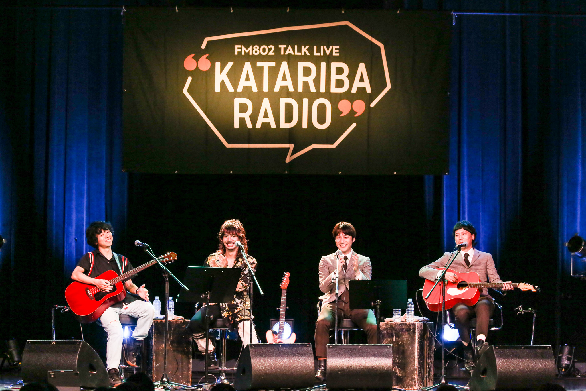 昨年4月に開催され話題を呼んだ『KATARIBA RADIO』の第2弾『FM802 TALK LIVE “KATARIBA RADIO” THE BAWDIES×OKAMOTO'S SPLIT TOUR 2023 開催記念『ON STAGE』de トーク!&アコースティック!』が、6月21日(水)に大阪・心斎橋のBIGCATにて開催された。