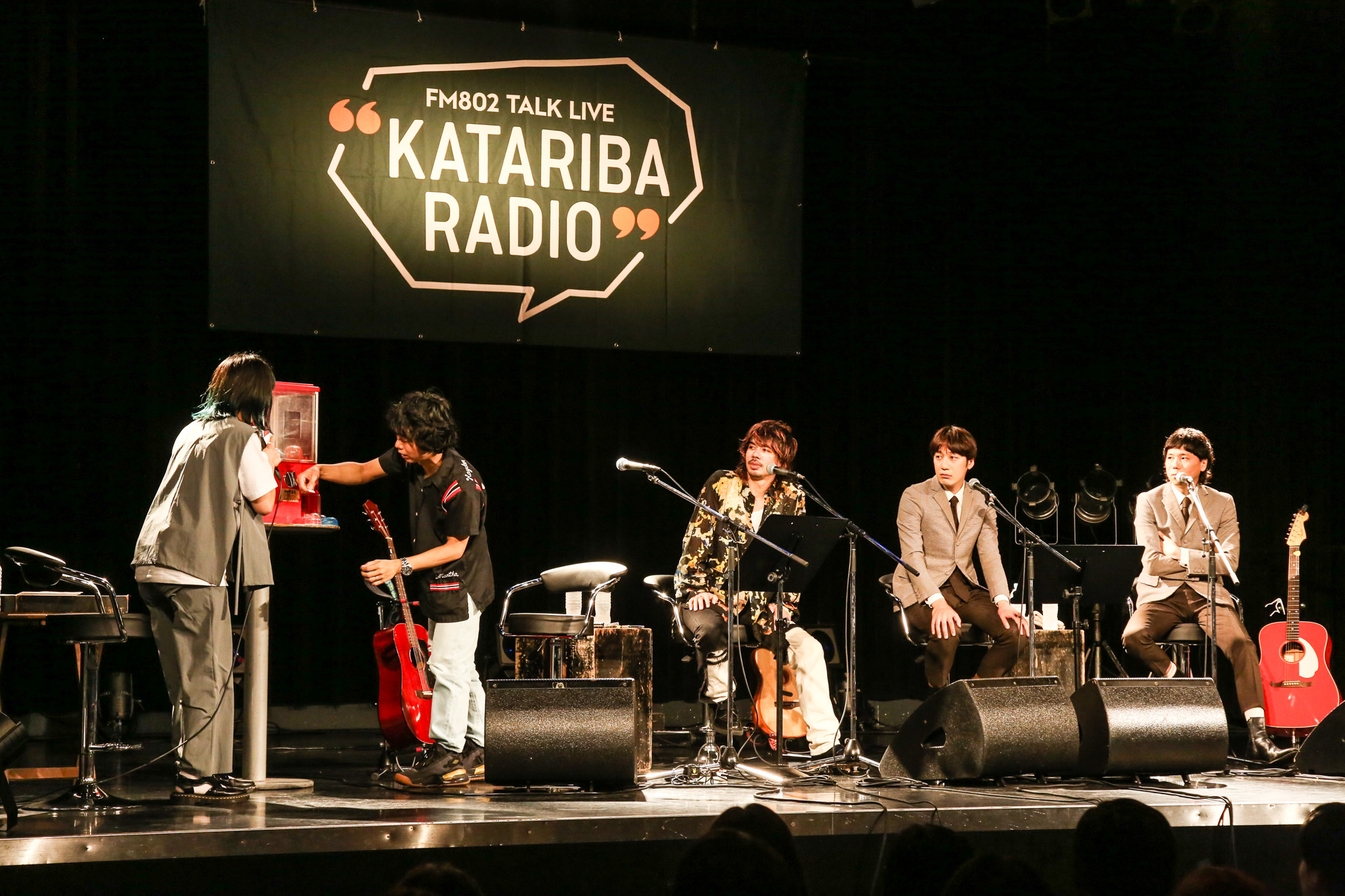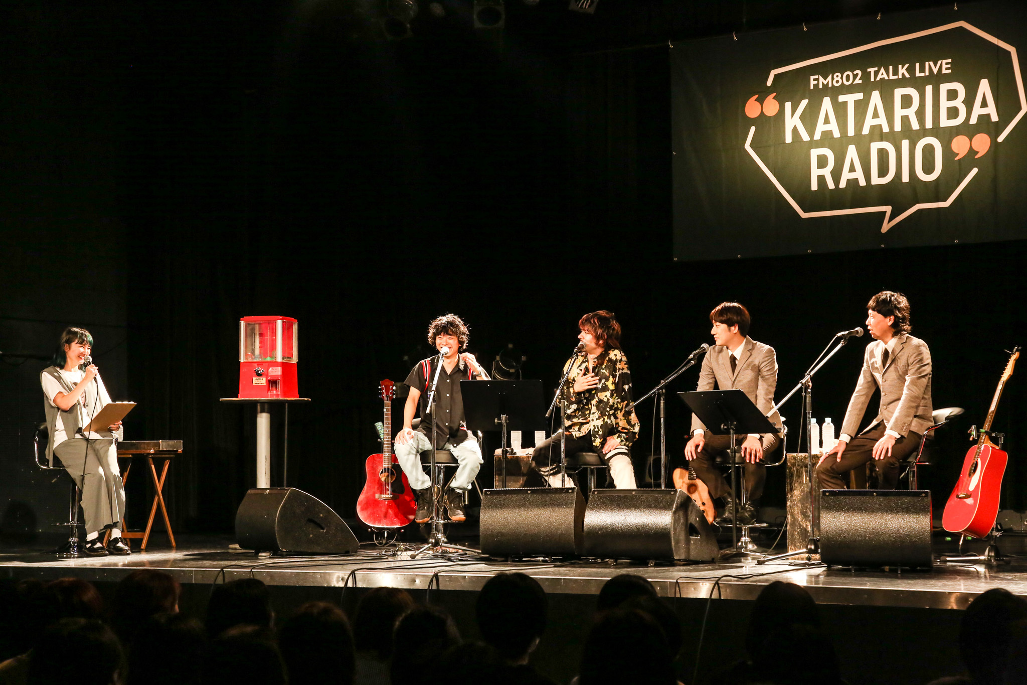 同じ学校の先輩・後輩で、同じライブハウスで育ち、15年以上前から交流がある4人は、登場からリラックスムードでトークも笑いの連続。学生時代の思い出や、ライブハウスでの出会いの話にも花が咲く。またガチャガチャでお題を選ぶ「ガチャTALK」では、ショウが「あれは忘れられないよね」と語るFM802主催のライブサーキット『MINAMI WHEEL』での貴重なエピソードも。