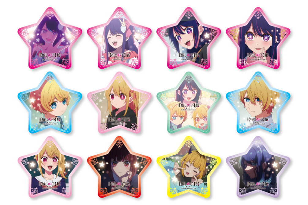 星型コースター 12種 ※ドリンクご注文1品につき1枚 星型コースター(全12種)をランダムでプレゼント (C)赤坂アカ×横槍メンゴ/集英社・【推しの子】製作委員会