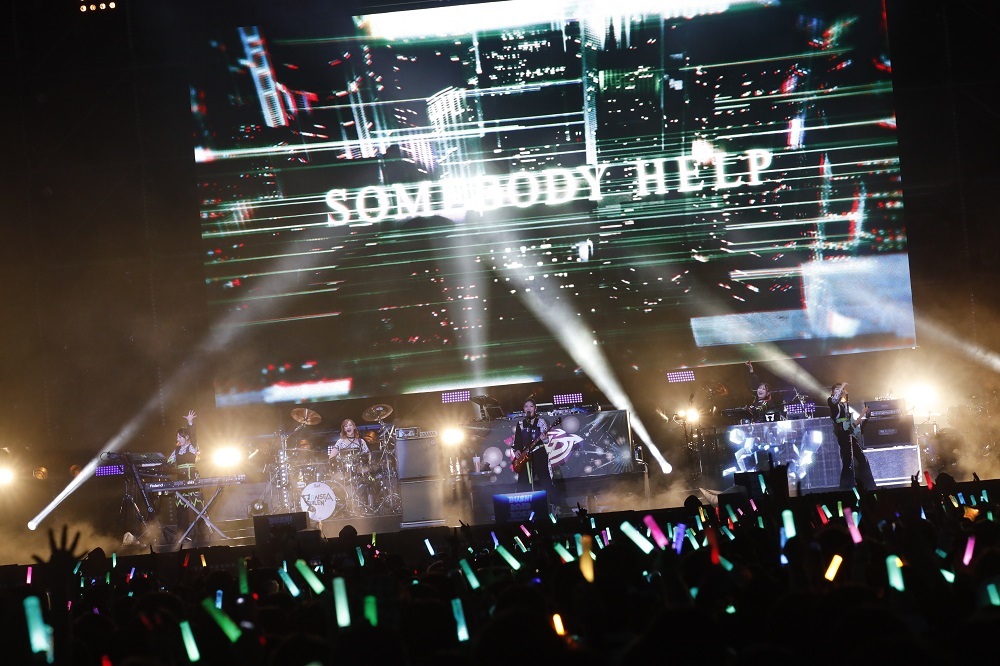 この日のトリを務めたのは、RAISE A SUILENだ。1曲目の「EXPOSE ‘Burn out!!!'」はメンバーのみならず、客席からも全力のシンガロングで、ZEPP以上の規模感でこの声量でのコール&レスポンスが起きる事に感動だし、最高以外の何物でもない。挨拶代わりのソロパートのリレーがあり、「UNSTOPPABLE」そして皆で歌って踊れて楽しい「灼熱 Bonfire!」では振り付けの指導も簡易でわかりやすくなっており、外部のロックフェス行脚の成果が出ているような気がした。「Repaint」「HELL! or HELL?」ともっと激しく、もっとカオスに、突き抜けるような演奏と虹色に輝くステージはラストに相応しい神々しさすら感じた。