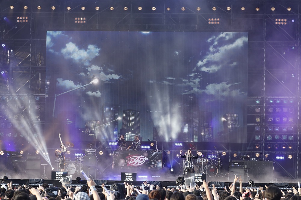 20分間の休憩を挟み、後半戦の一番槍となったのは燐舞曲だった。「ARCANA」「KiLLiNG ME」とロックフェスらしい選曲を続け、「カレンデュラ」で「燐舞曲、はじめます」とお決まりのセリフが飛び出すと「名前のない怪物」「unravel」とカバーで盛り上げていく。