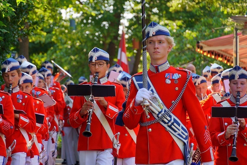 今回の公演での共演は、世界最古のジュニア音楽隊「デンマーク王国少年少女音楽隊チボリガード」。文化施設チボリに所属し、吹奏楽隊、鼓笛隊、鉄砲隊の3部隊からなるジュニア音楽隊だ。8歳から16歳までの子どもが、おとぎの国から抜け出したような伝統的な衣装に身を包み、デンマーク最高峰の音楽教育によって磨かれた腕で定期的な音楽パレードを行っている。
