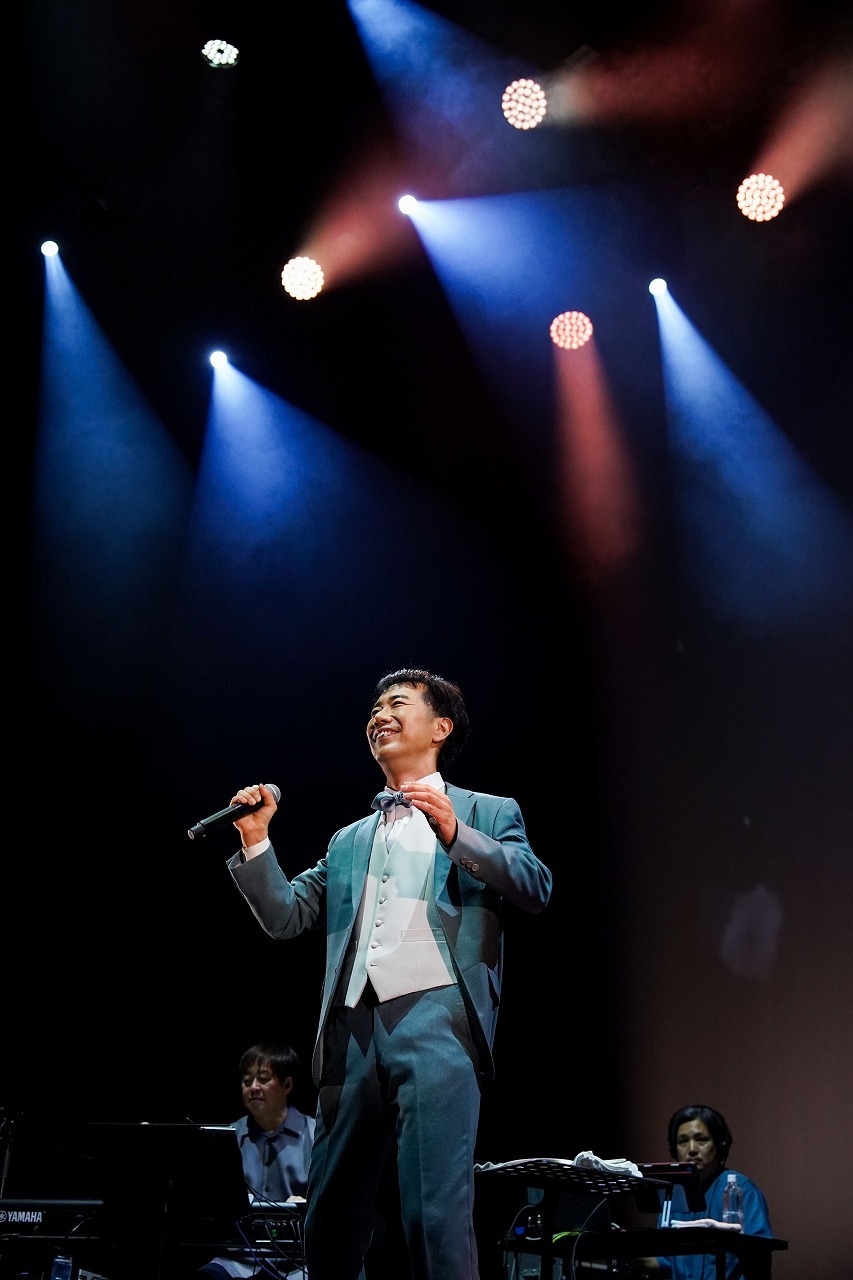 「こうやって今もコンサートをさせていただけているのは、絶対に松本隆さんのおかげで、『ロミオ道行』というアルバムのおかげです」と感謝の言葉を口にすると観客からは大きな拍手が。そして、ハンドクラップとともに筒美京平作曲の「究極キュート」へ。丁寧に歌い上げる藤井の姿からは、松本と筒美への心からのリスペクトがにじみ出る。そして、ライブが進むに連れてあらためて気付かされるのは歌詞の強い存在感だ。今回の公演では、Lyric Sync Technologyによるリリックスピーカー用の技術を活用し、ステージ上のスクリーンに歌詞をモーショングラフィックで映し出す映像演出が施されている。最適なモーショングラフィックを生成するにあたり、歌詞の内容に基づいて印象空間やサビを自動推察するこのテクノロジーは、松本による歌詞世界への没入感をより高めてくれている。
