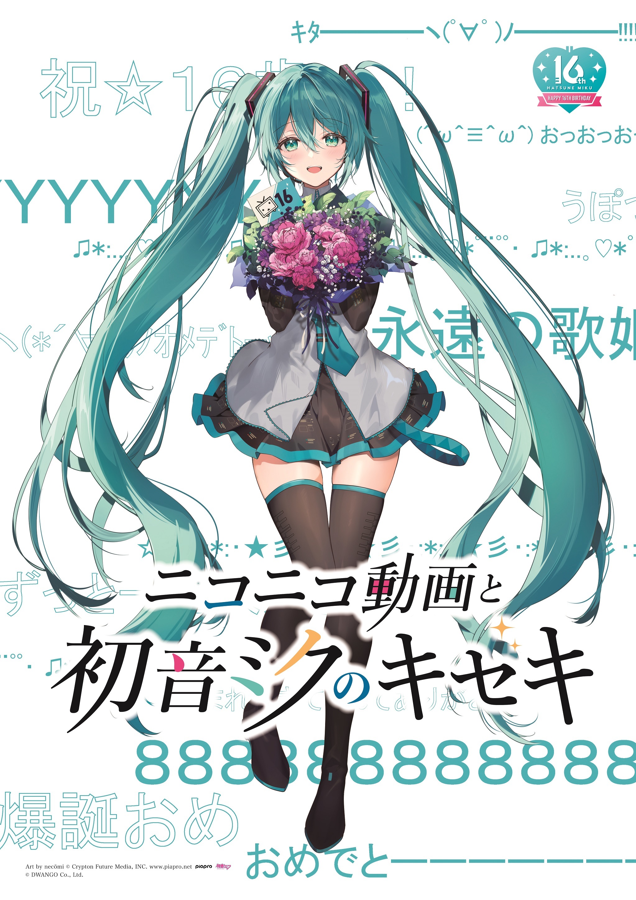 会場ではニコニコ動画で発表された様々な楽曲やエピソードが展示されるほか、ミク楽曲の世界観に入り込むような空間体験、スペシャルなフォトスポットも多数登場するとのこと。開催決定とともに、necömi氏が描き下ろした展覧会キービジュアルも公開。会場では、同イラストを使用したオリジナルグッズも販売される予定。