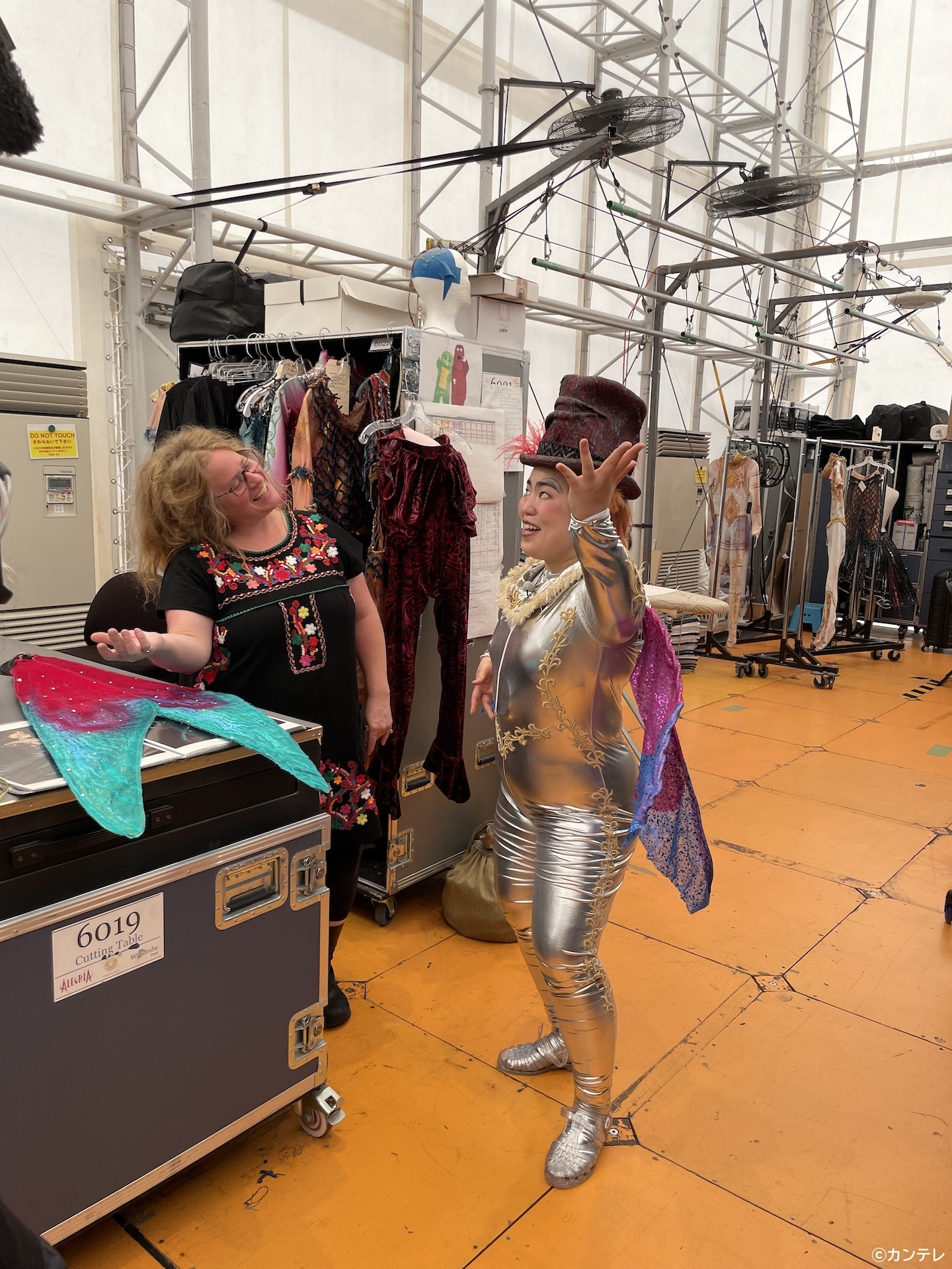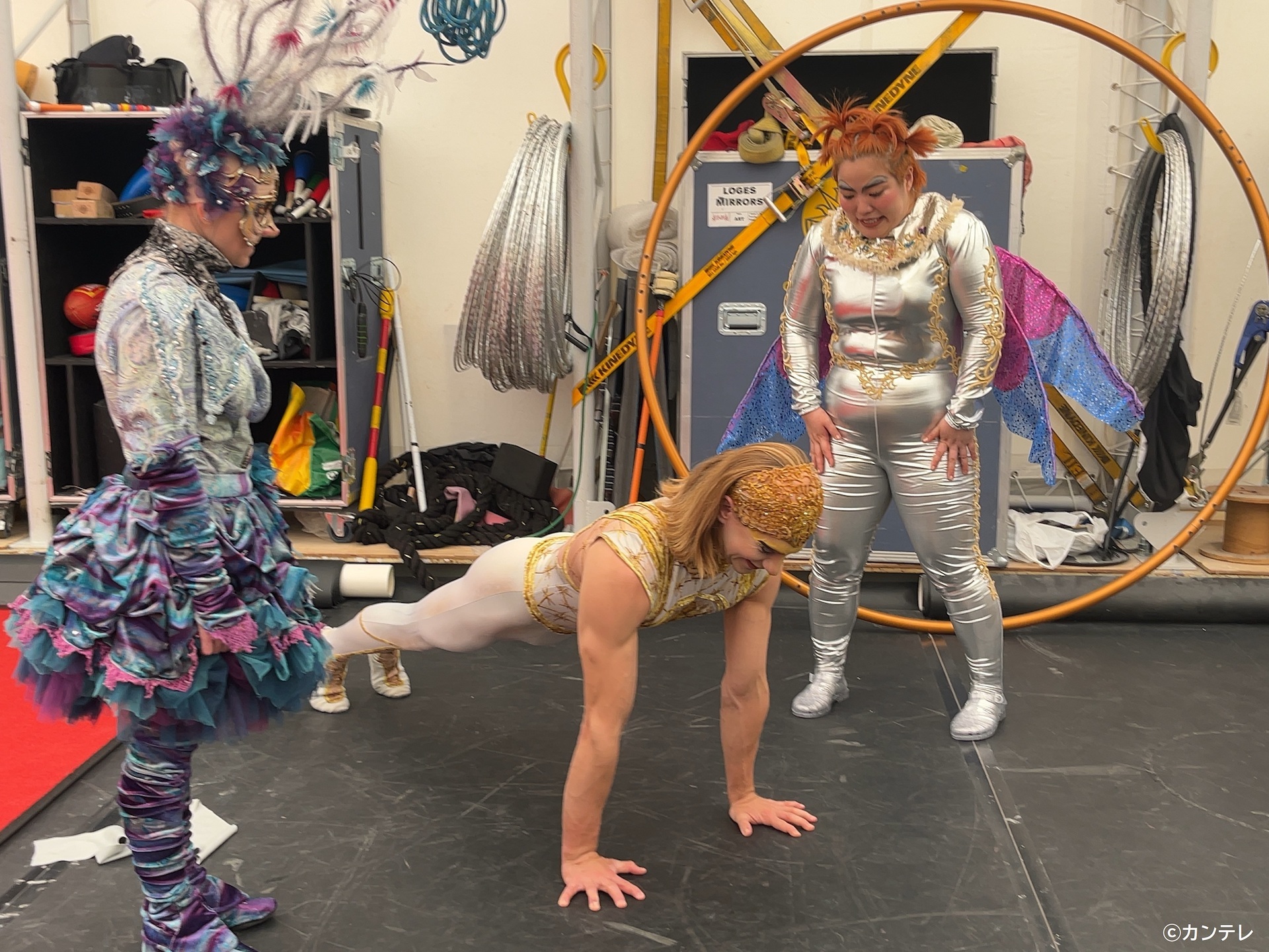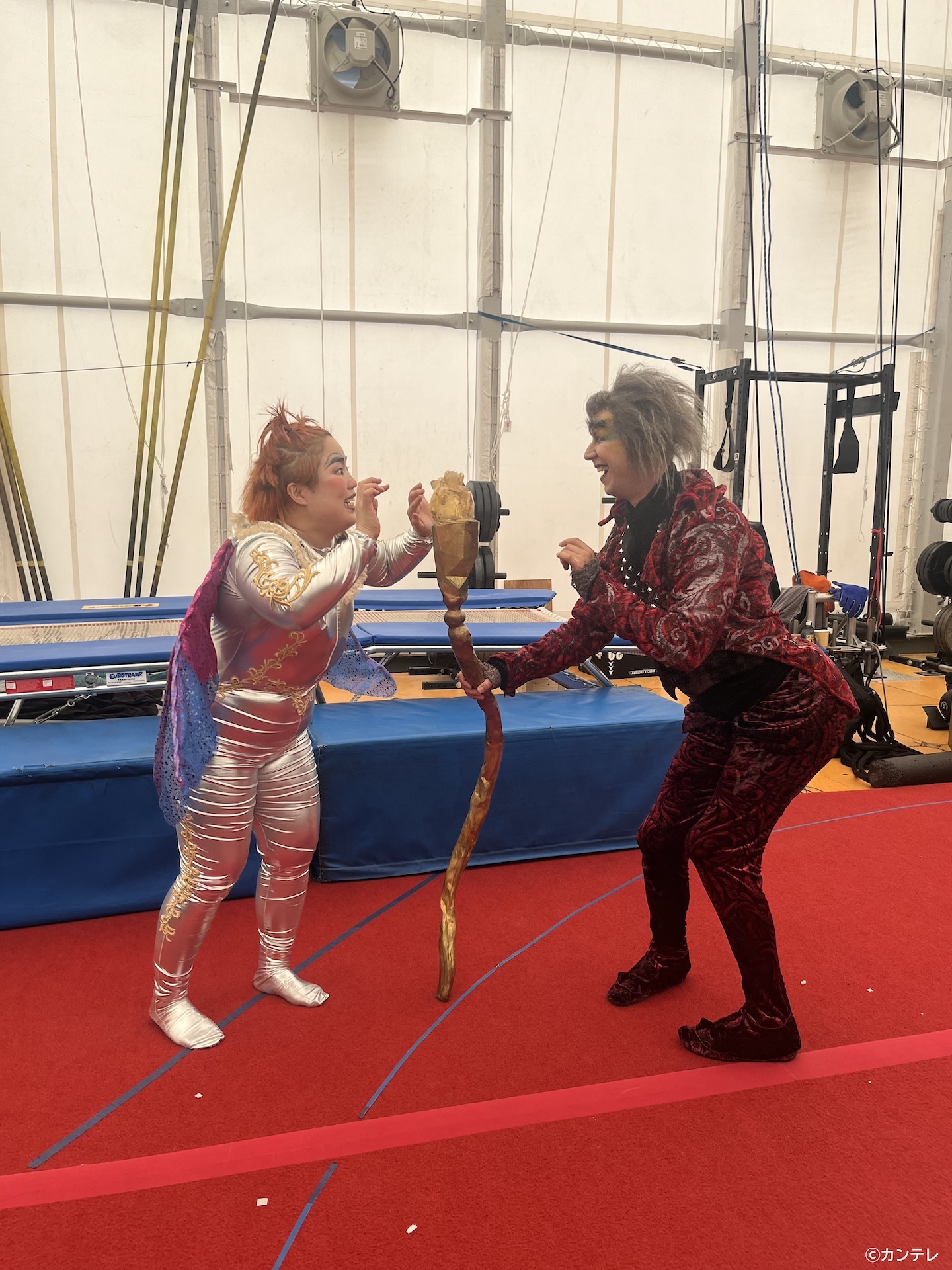 『アレグリア』の主人公ミスター・フルールからは、言葉を使わずに顔と体を使って表現するノンバーバルな演技を学び、「世界に通用する表現」を伝授。ミスター・フルールとは意気投合したようで、「私のことを「Japanese favorite character!(日本で一番好きなキャラクター!)」と言ってくれました。もしかしたら、この格好で普段から活動している人やと勘違いしているかもしれないです」とおどけながらも「フルールさんの言葉で「僕はずっとシルクのアーティストになりたくて、夢が叶ったんだ!」という発言があったのがとても印象的でした。夢が叶う人なんて一握りの世界だと思うんですけど、それを叶えた人を間近で見ることができて、フルールさんからは勇気をもらいました」とコメント。