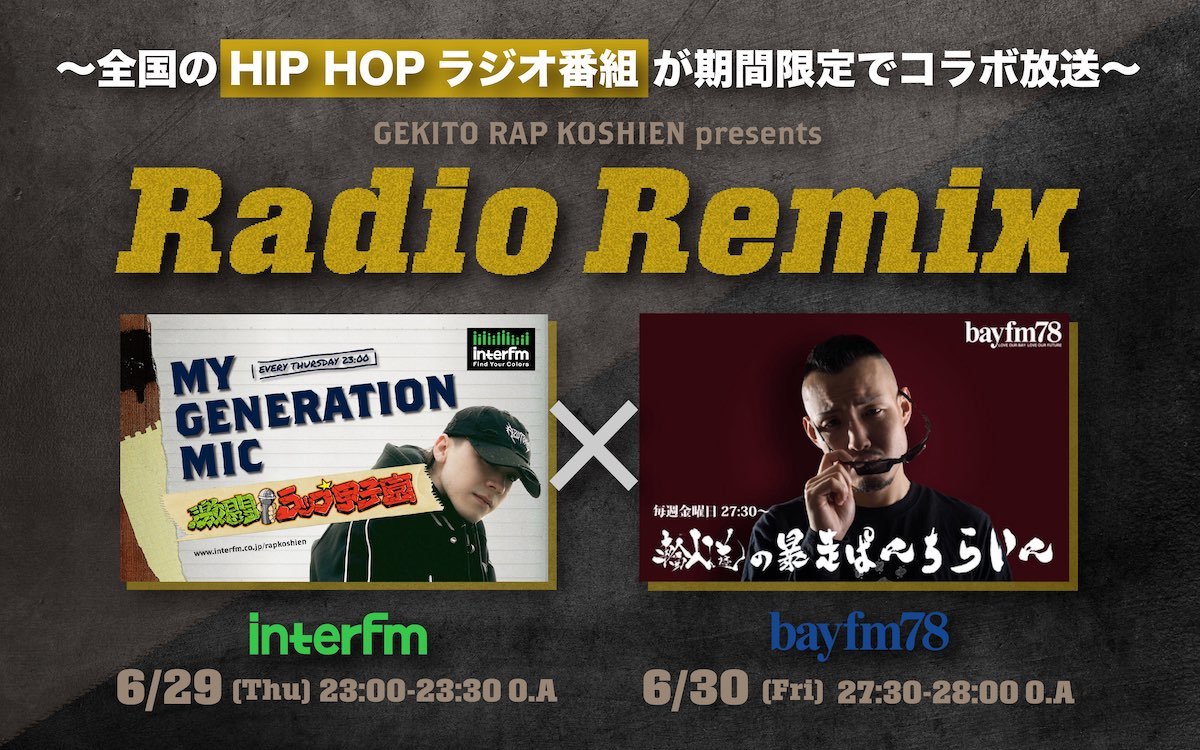 10代のMCバトルイベント『激闘!ラップ甲子園』(通称"激ラ")のラジオ番組interfm『MY GENERATION MIC -激闘!ラップ甲子園 -』が、全国のHIP HOPラジオ番組と繋がり、期間限定でコラボレーション放送することが決定した。