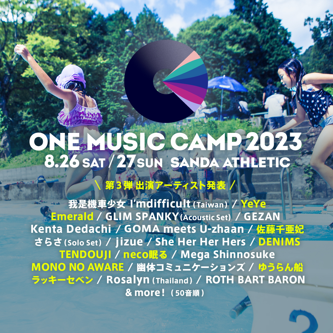 8月26日 (土) 、27日 (日) に兵庫県三田アスレチック野外ステージで開催される『ONE MUSIC CAMP 2023』の出演アーティスト第3弾が発表された。