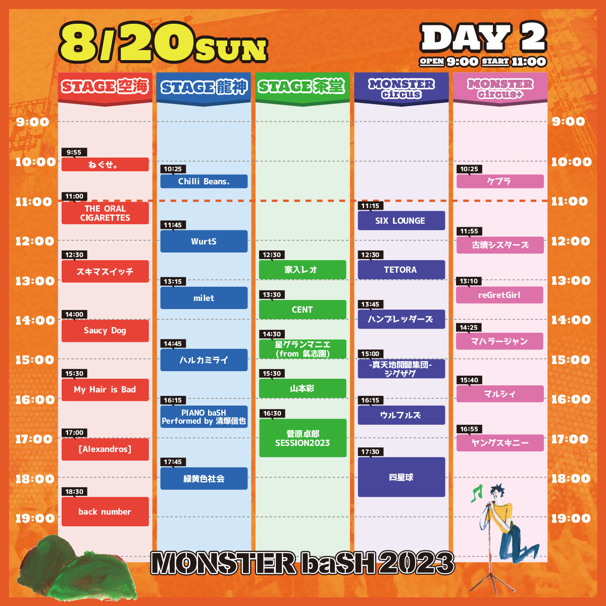 8月19日(土)・20日(日)に、香川県・国営讃岐まんのう公園にて開催される野外フェス『MONSTER baSH 2023』のタイムテーブルが発表された。