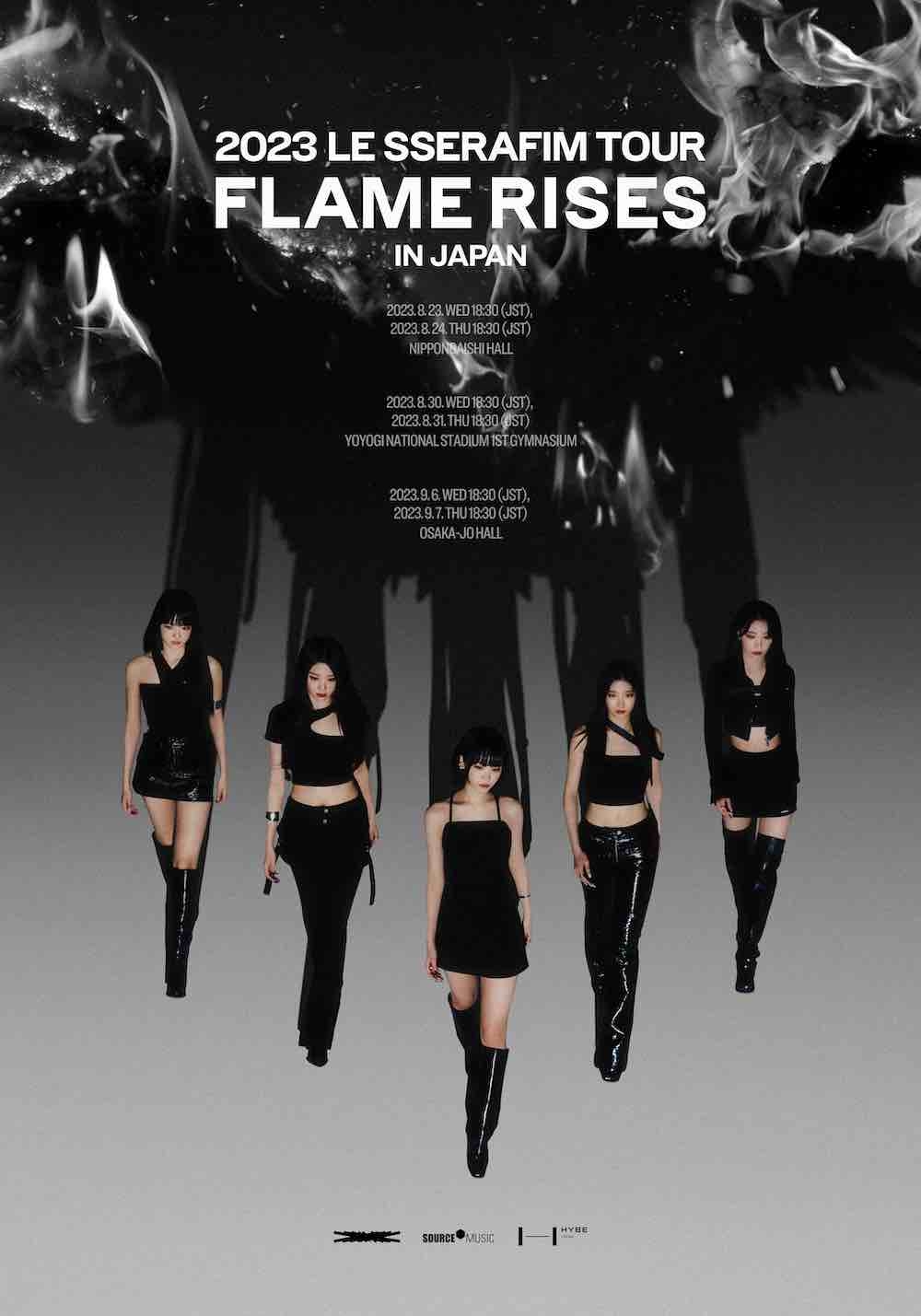 日本公演『2023 LE SSERAFIM TOUR ‘FLAME RISES’ IN JAPAN』は、8月23日・24日に愛知(日本ガイシホール)、8月30日・31日に東京(国立代々木競技場第一体育館)、9月6日・7日に大阪(大阪城ホール)の3都市6公演で開催となる。チケット先行販売含むそのほかの詳細は、公式サイトなどで確認しよう。