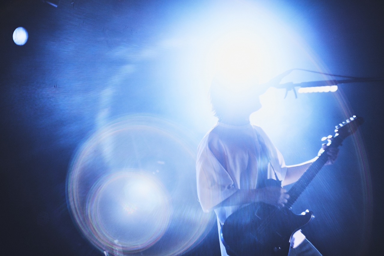 続いてステージに立ったのはヤングスキニーだ。SEにのってメンバーが順番に登場し、最後にかやゆー(Vo/Gt)が姿を表すとひときわ大きな歓声と拍手が起こる。今の彼らに注がれる期待感がよくわかる。そしてかき鳴らされるギターと力いっぱい打ち鳴らされるドラム。1曲目は「ヒモと愛」だ。とたんにフロアからは「待ってました」とばかりに大音量の手拍子。前のめりな演奏とどこか切ないかやゆーの歌声が、問答無用に感情をかき立てていく。しおん(Dr)が「調子どうですか、リキッド!」と挨拶をして突入したのは新曲「愛の乾燥機」。ゴンザレス(Gt)の弾くリフが不安定な心を鼓舞し、りょうと(Ba)のベースラインが曲を前へ前へと押し進める。ちょっと不安定で、でも鋭い、ヤングスキニーのバンドサウンドはやっぱり独特で、どうしようもなく心を揺さぶる。手拍子に後押しされて「ゴミ人間、俺」を披露すると、ギターを置いたかやゆーがアカペラで歌い始める。そこにシンセのリフが入ってきて、グルーヴィなサウンドが展開していく。「コインランドリー」だ。絶妙な韻を踏んだ歌詞を呟くように歌うかやゆー。さっきまでテンション高く盛り上がっていたオーディエンスもじっくりと聴き入っている。