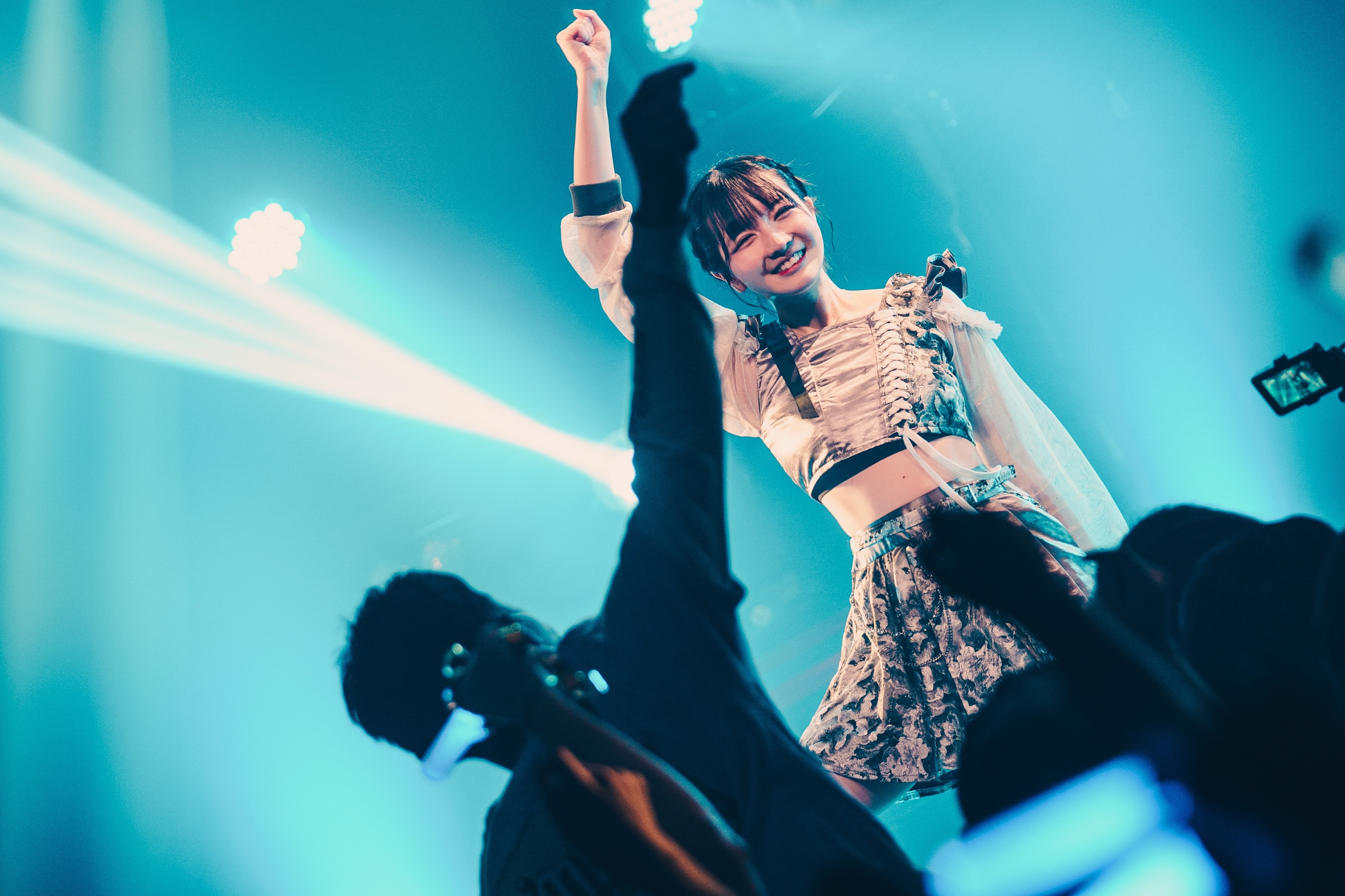 ライブ中盤のMCは、メンバー曰く「お気持ち表明」の時間。先陣を切ったのは汐見。彼女は涙を流しながら以下のようなことを話した。「今年大学を卒業したんですけど、アイドルをやるって決めたからにはちゃんとアイドルを生業にしたかったんですよ。これまでは人生で大きな選択をすることを避けてきたけど、自分の人生にこんなすてきなことがあるなんて思っていませんでした。学歴を捨ててこういう業界に入るのは勇気がいったけど、その決断をしてよかったと思うし、その決断をした自分を誇りに思う。そう思わせてくれたのはファンのみんな。自分の人生を切り開くことはこんなに楽しいんだ」