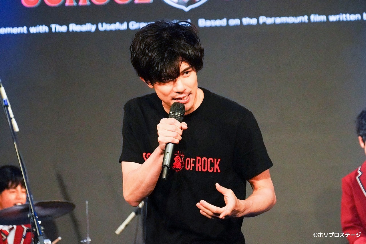 僕はこの作品が大好きで、映画はもちろんブロードウェイでもウエストエンドでも観ておりましたので、オファーをいただいた時は迷わず「はい」と言いました。 個人的には「ツーブロック禁止」とか「リボンの幅は2cmならOK、3cmはダメ」というような日本の「ブラック校則」にずっと文句を言い続けてるんですけれど、この作品はそういう学校の変な真面目さとか意味のない規則をこんなに楽しくキャッチーな曲で笑い飛ばして歌ってくれるというのがすごいなと、初めて観た時にクリエイターとしてはやられたなと思いました。 才能がないのに、夢を諦める時を過ぎてもそのままずっと夢を見続けているデューイが、デューイだけでなくほかの登場人物たちも、子どもたちからエネルギーをもらって成長していくという構造が本当によくできていると思います。 もう名作にしないわけにはいかないので、頑張ります。 よろしくお願いします。