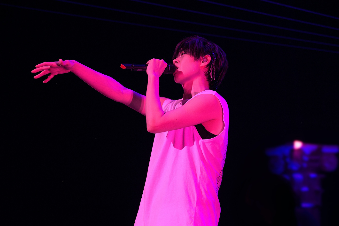 過去を辿った勢いでクマムシの「あったかいんだからぁ♪」やSEKAI NO OWARIの「Dragon Night」の一部を披露するという大サービスもありつつ、浦島坂田船のナンバー「世界で一番好きな名前」では、アルバム『L∞VE』のツアー衣装である学生服ブレザーを着て登場し、歌もダンスもかわいいに振り切った2人。一転、ジャケットを脱いでノースリーブ姿になった「Pink」では歌でもダンスでも艶っぽさを爆発させて、ハイキックやダンサーとの千手観音ダンスでも圧倒。浦島坂田船としても、ソロとしても、“うらさか”としても、表現を追い求めて進化し続けているのだ。