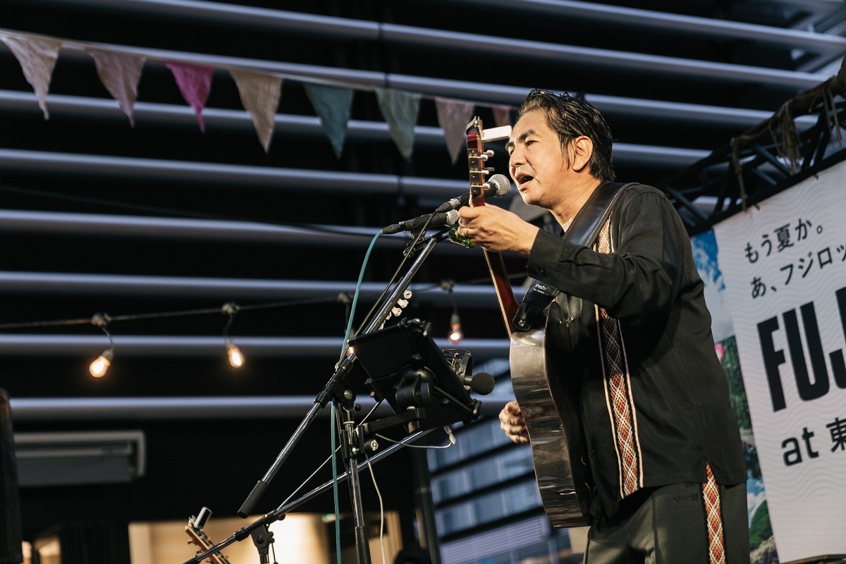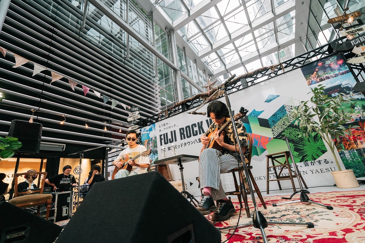 フー・ファイターズ(FOO FIGHTERS)、リゾ(LIZZO)、ザ・ストロークス(THE STROKES)のヘッドライナーをはじめ、200組以上の個性豊かなアーティストが国内外から集結する『フジロック』のプレイベント『FUJI ROCK WEEK at 東京ミッドタウン八重洲』では、日本の玄関口である東京駅前に建つ「東京ミッドタウン八重洲」に新潟県湯沢町の大自然の中で開催されている『フジロック』の雰囲気が演出された特別空間が出現し、様々なイベントが開催されています。本稿ではそのイベント初日、7月8日の模様をお届けします。