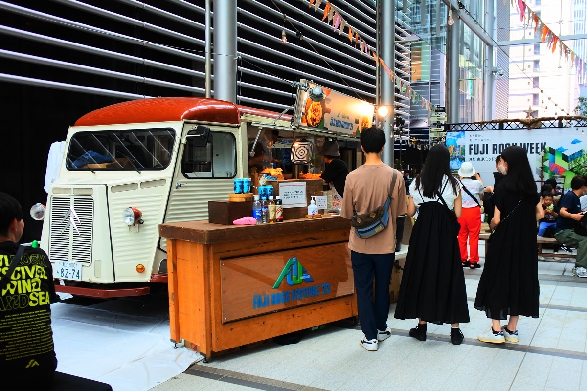 続いて、1Fの「FUJI ROCK GARDEN」から2Fの「FUJI ROCK SQUARE」へ移動。八重洲セントラルタワー内のエスカレーターを使って数分で到着したヤエスパブリックには飲食店やショップがひしめくように点在し、階下とはまた違った雰囲気が漂っていました。