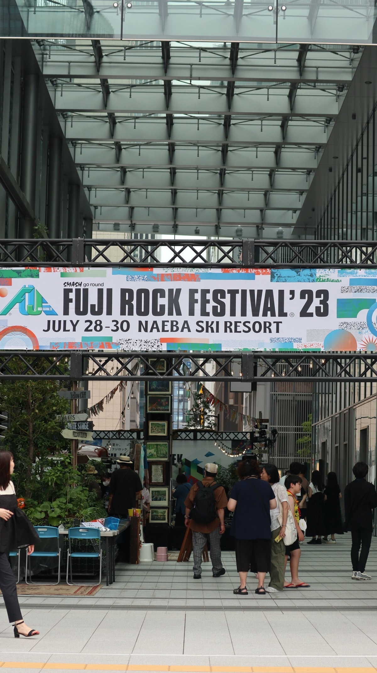 プレイベント『FUJI ROCK WEEK』が開催されている「東京ミッドタウン八重洲 八重洲セントラルタワー」は2023年3月10日に東京駅八重洲口正面にグランドオープンした大規模オフィス複合ビル。東京駅直結・徒歩2分というアクセスしやすい場所にある日本で最もアーバンな空間と言える場所で、自然との共生を謳う『フジロック』がどのように演出されているのか。そんな想像を膨らませながら、いざ会場のある東京駅へ。