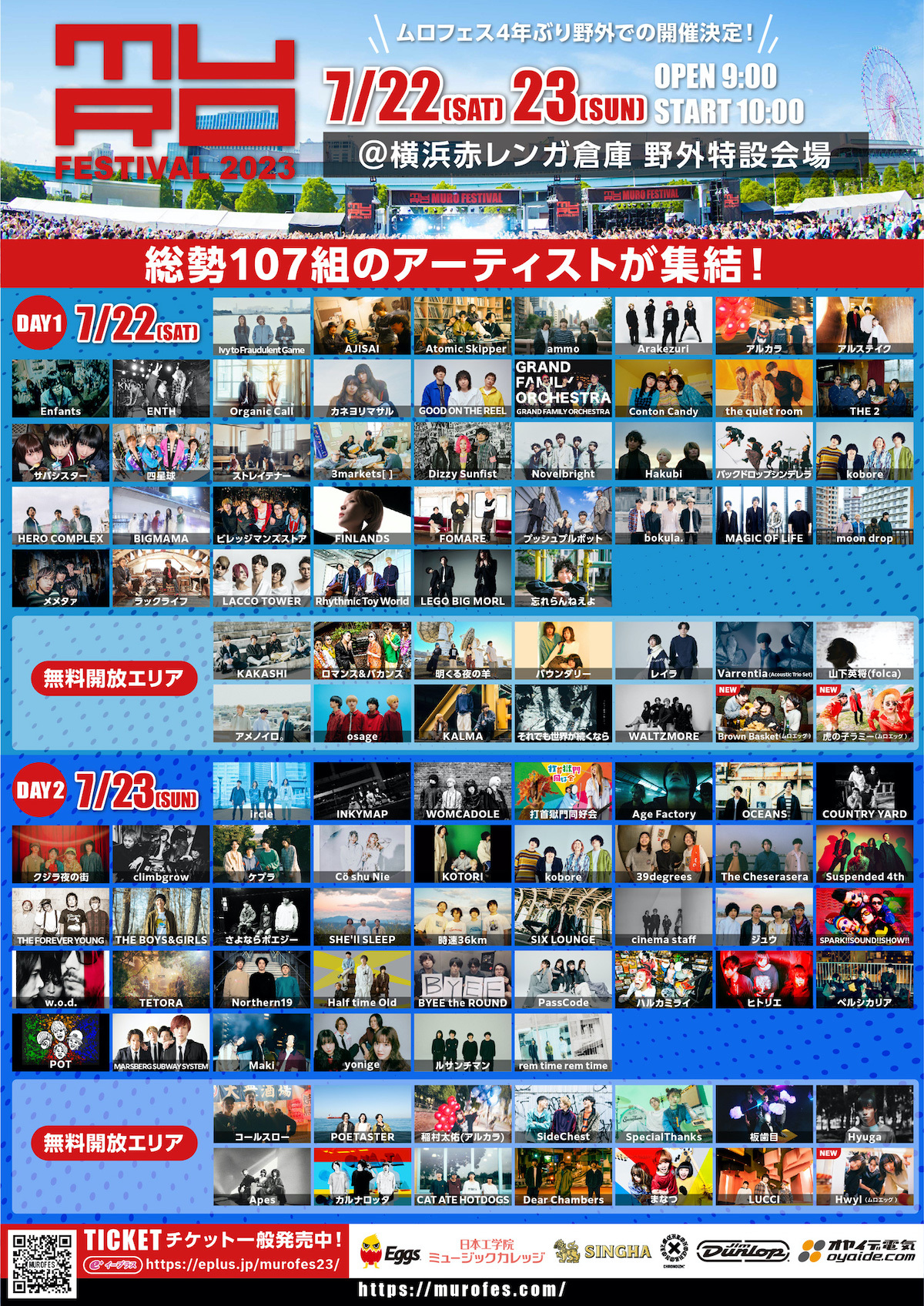 7月22日(土)・23日(日)に横浜赤レンガ倉庫にて開催される『MURO FESTIVAL 2023』とEggsのオーディション企画「ムロエッグ」結果が発表された。