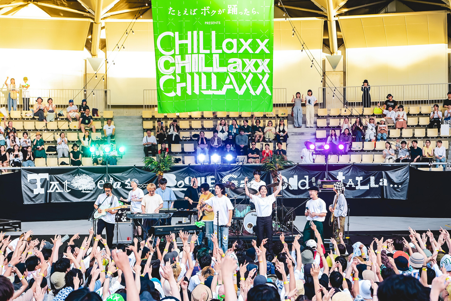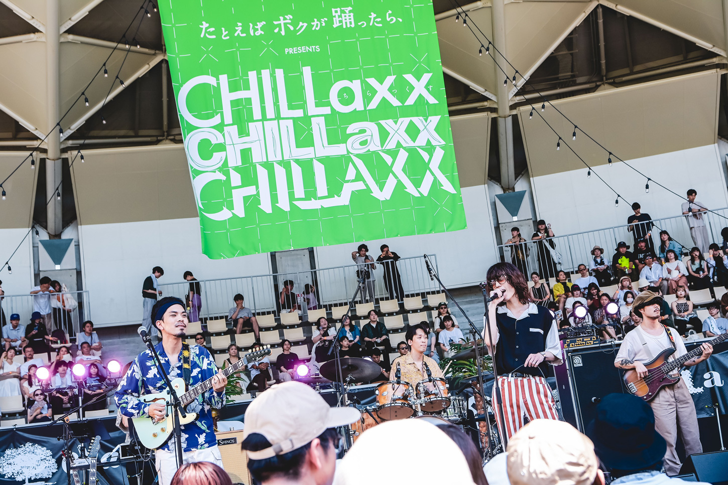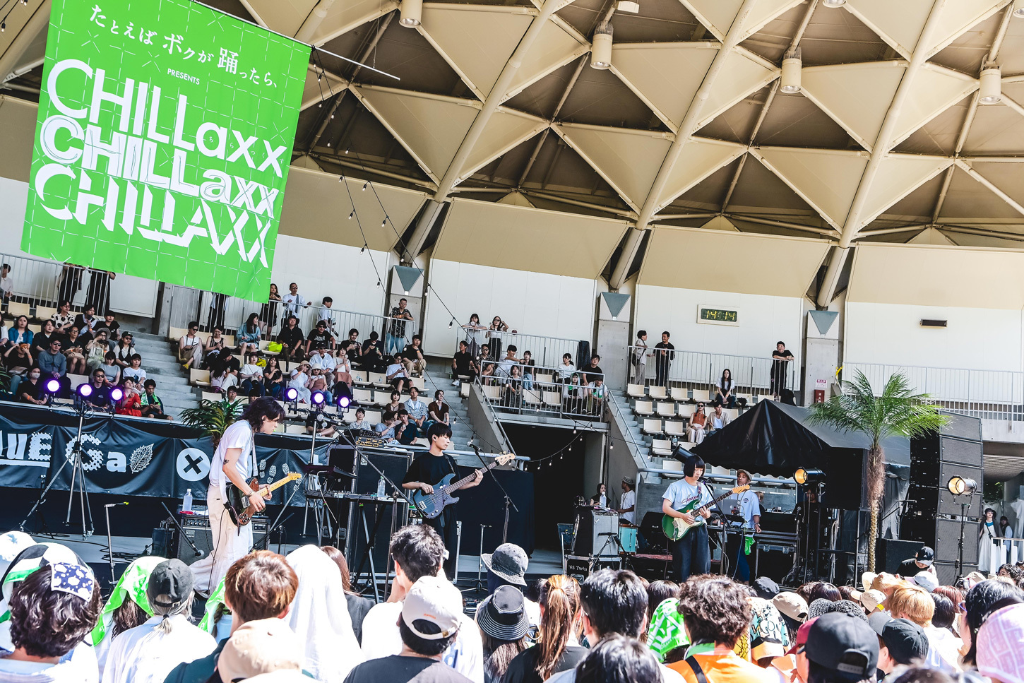 7月2日(日)、服部緑地野外音楽堂にて『たとえばボクが踊ったら、presents「Chillaxx」× yonawo presents「tokyo」』が開催された。『たとえばボクが踊ったら、(以下、ボク踊)』は、大阪のイベンター・夢番地の大野氏が「関西で魅力的なキモチいいフェスがしたい」という想いで企画した、2016年から続くイベント。今回はスピンオフ企画として、『yonawo presents「tokyo」』とのコラボでの開催となった。昨年7月に配信リリースされたyonawoの楽曲「tokyo feat. 鈴木真海子, Skaai」をコンセプトに、yonawo、鈴木真海子(バンドセット)、Skaaiの3組が東阪福でツアーを廻っていたが、そのファイナルが本イベントとコラボ。出演者はego apartment、Skaai、鈴木真海子、yonawo、離婚伝説(50音順)。そしてwelcome actとしてシトナユイが登場。司会進行をつとめたのは長年「ボク踊」を見守ってきた、FM802 DJの加藤真樹子。「ボク踊」ならではの緩さと温かさが充満した、まさにスペシャルな1日。きっとあの場にいた人の記憶にいつまでも残り続けるだろうイベントとなった。