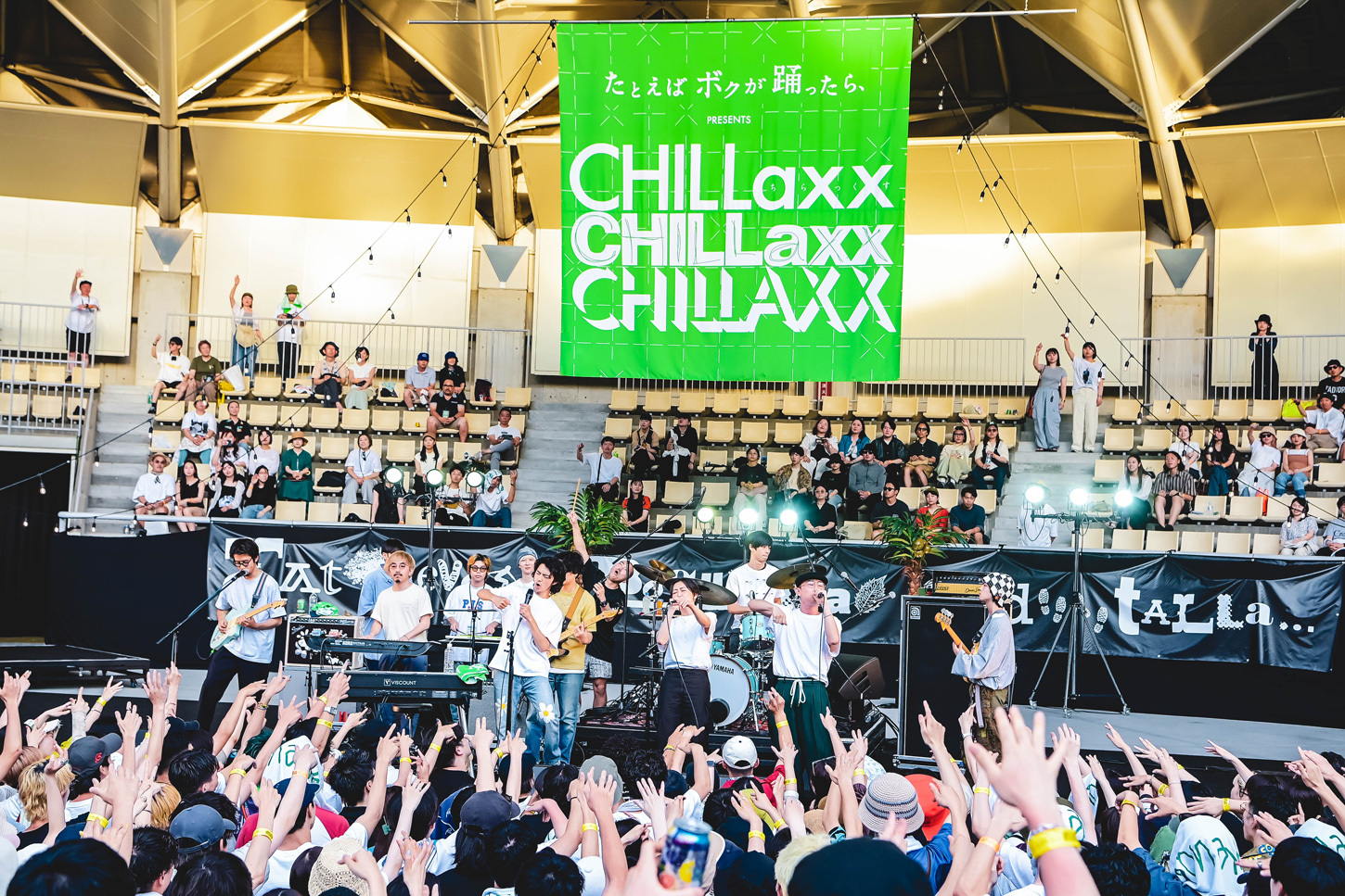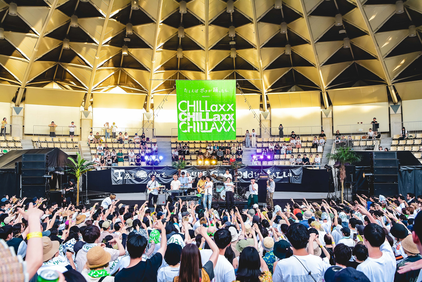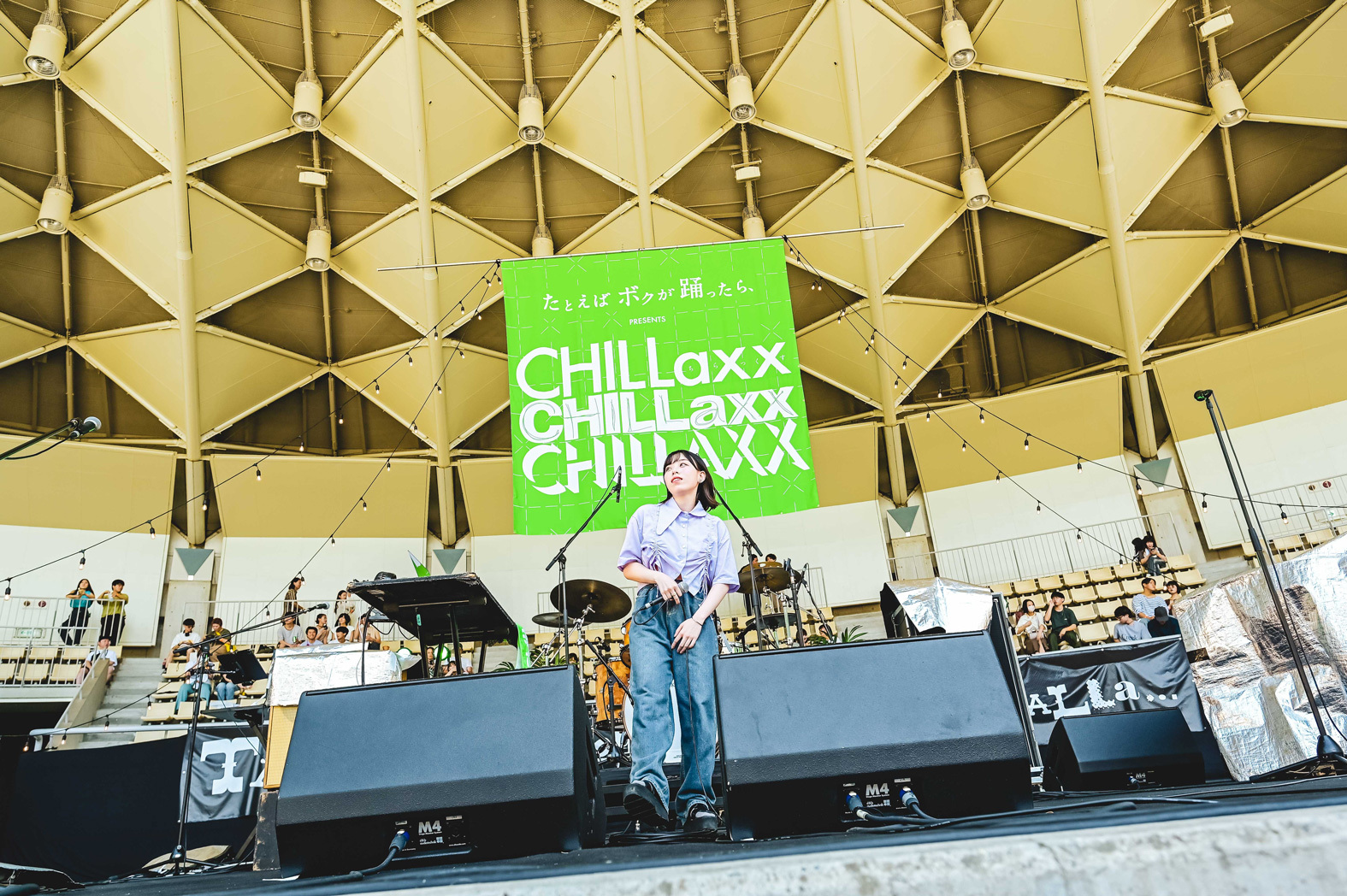 7月2日(日)、服部緑地野外音楽堂にて『たとえばボクが踊ったら、presents「Chillaxx」× yonawo presents「tokyo」』が開催された。『たとえばボクが踊ったら、(以下、ボク踊)』は、大阪のイベンター・夢番地の大野氏が「関西で魅力的なキモチいいフェスがしたい」という想いで企画した、2016年から続くイベント。今回はスピンオフ企画として、『yonawo presents「tokyo」』とのコラボでの開催となった。昨年7月に配信リリースされたyonawoの楽曲「tokyo feat. 鈴木真海子, Skaai」をコンセプトに、yonawo、鈴木真海子(バンドセット)、Skaaiの3組が東阪福でツアーを廻っていたが、そのファイナルが本イベントとコラボ。出演者はego apartment、Skaai、鈴木真海子、yonawo、離婚伝説(50音順)。そしてwelcome actとしてシトナユイが登場。司会進行をつとめたのは長年「ボク踊」を見守ってきた、FM802 DJの加藤真樹子。「ボク踊」ならではの緩さと温かさが充満した、まさにスペシャルな1日。きっとあの場にいた人の記憶にいつまでも残り続けるだろうイベントとなった。