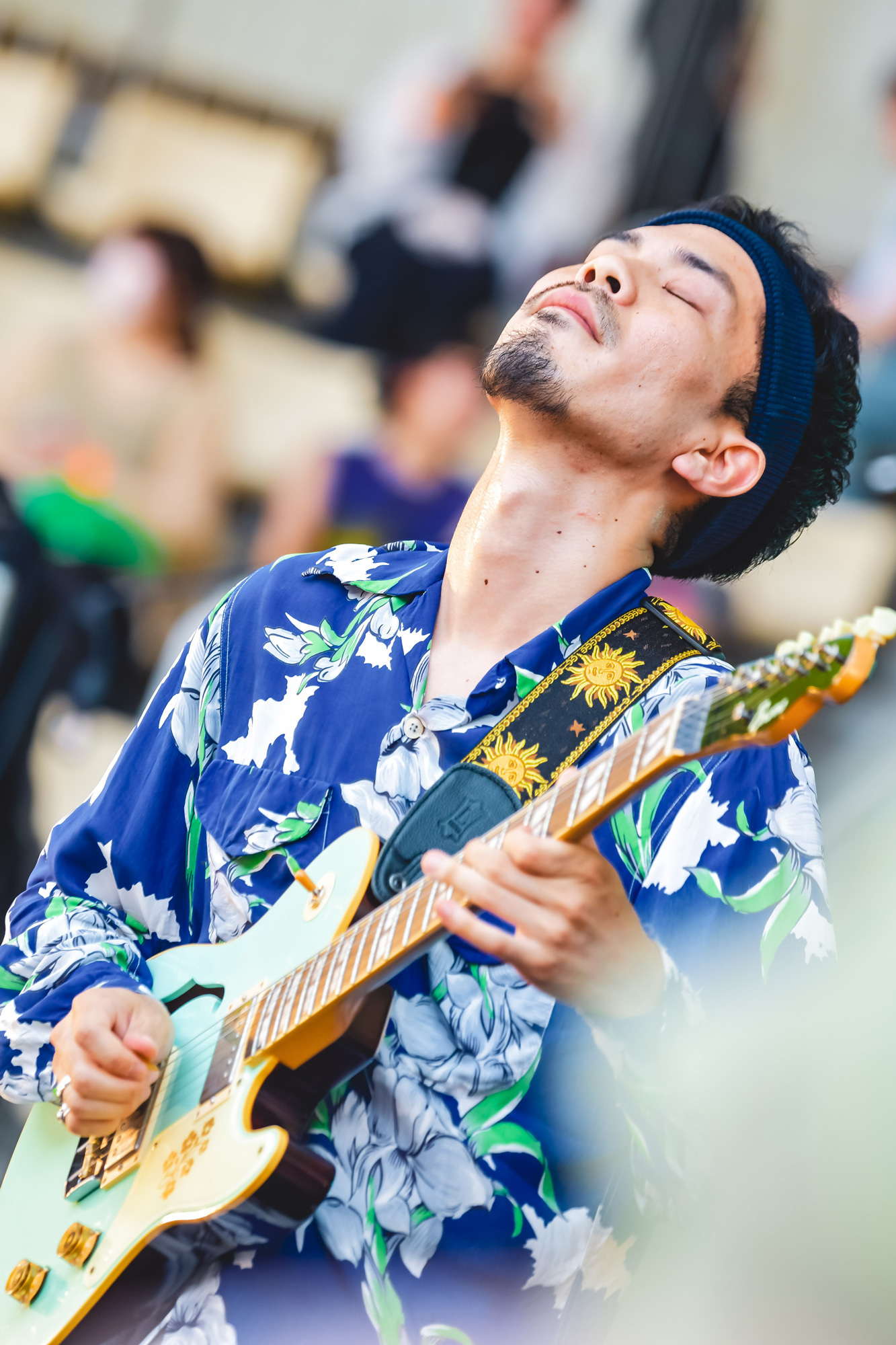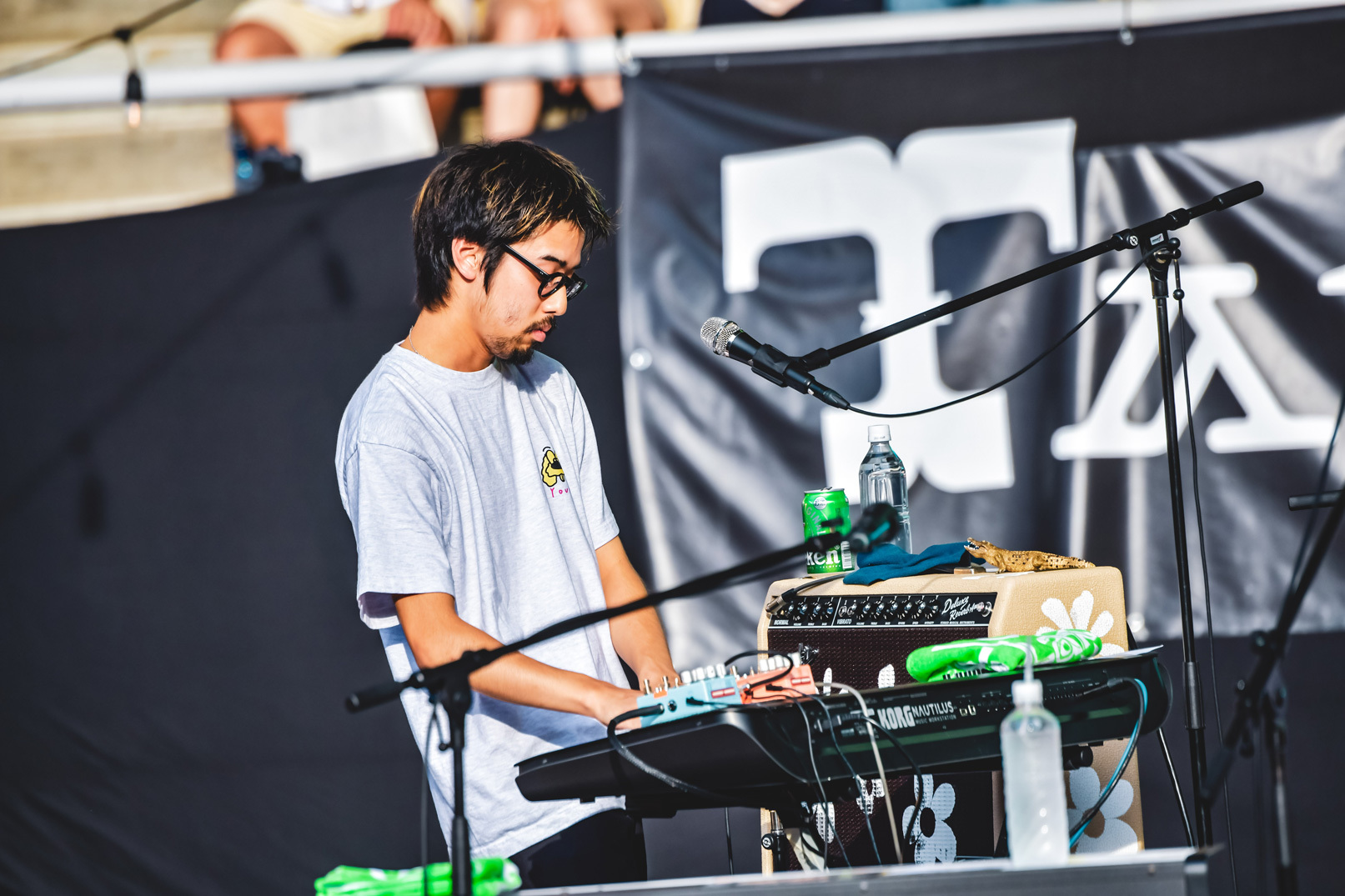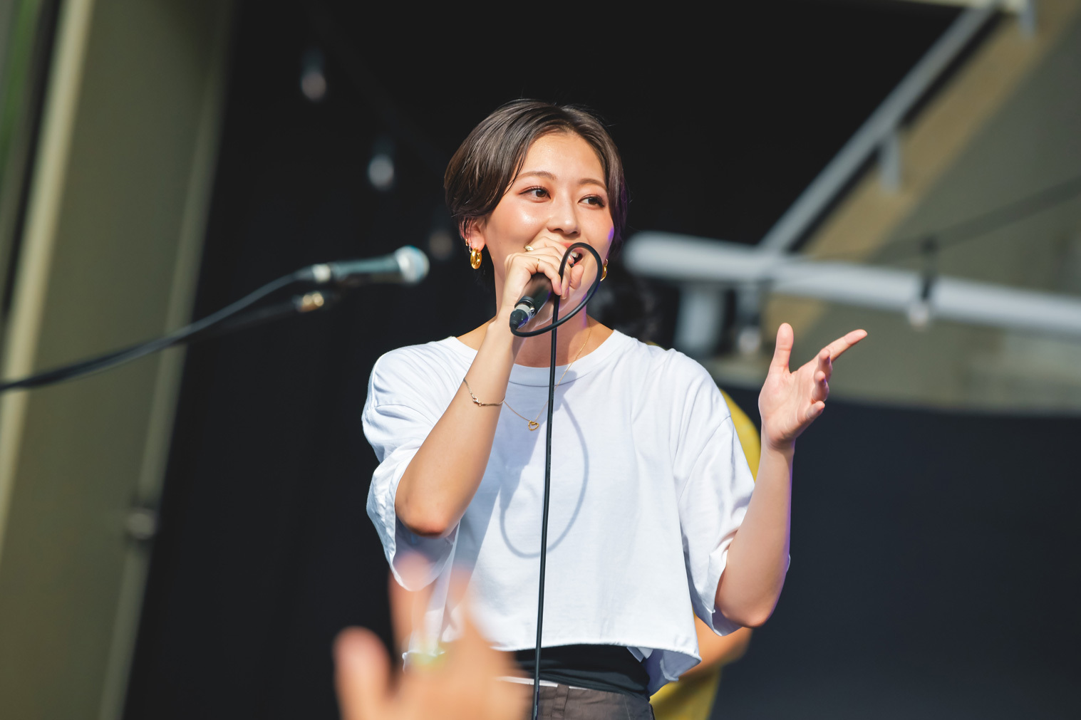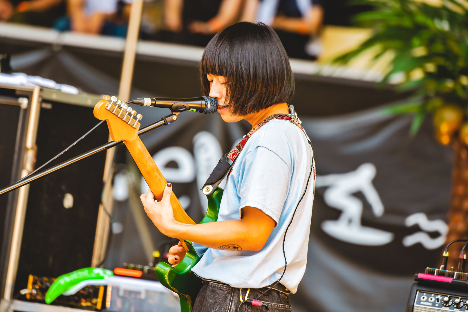 「yonawo x 鈴木真海子 x Skaai最終日でーす! 最高のイベントだね。全アーティストカッコ良いから間違いないぞ。ただ暑いね」と何度も暑いと連発していたがそれもそのはず、ステージに直射日光が突き刺す時間帯。そんな気候でも、ジャジーでクールな「19」、シンセが清涼感をくれたボサノヴァ調の「どっかの土曜日」でナイスグルーヴで満たしてゆく。