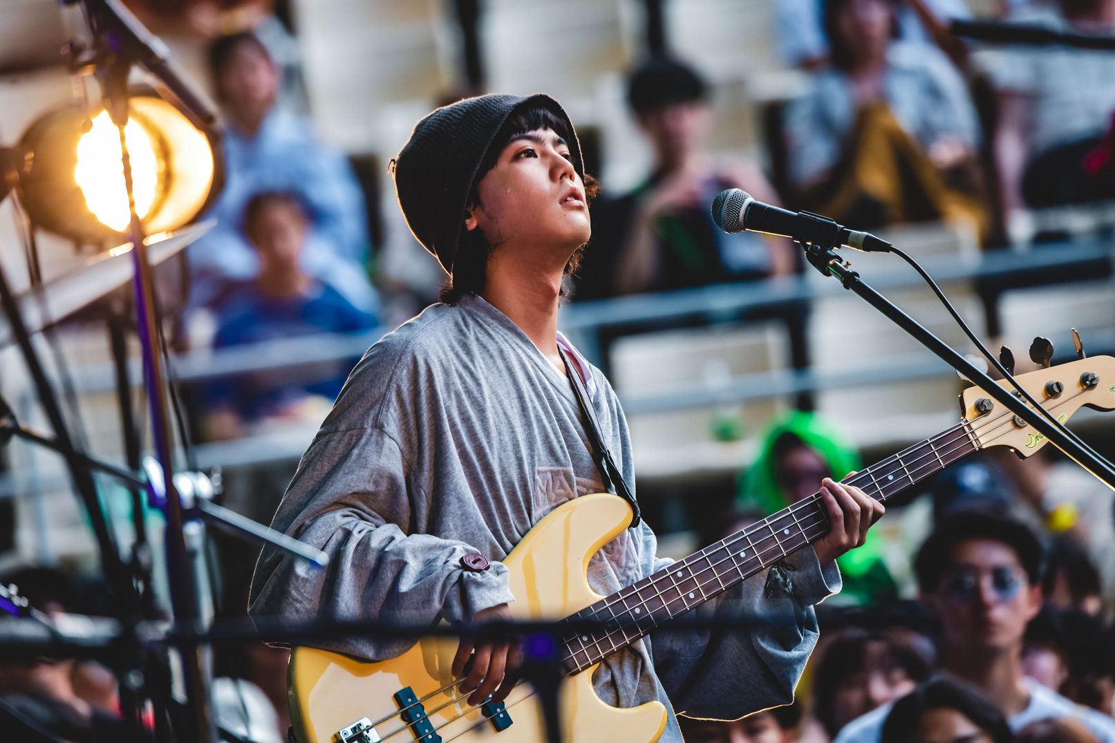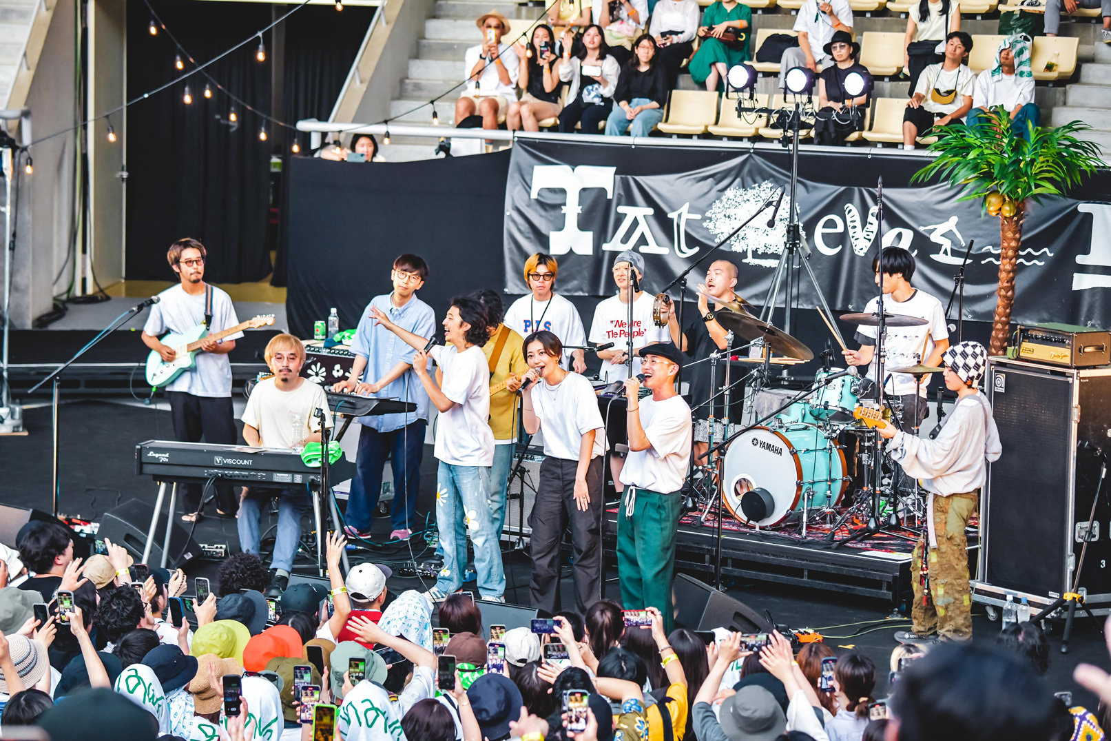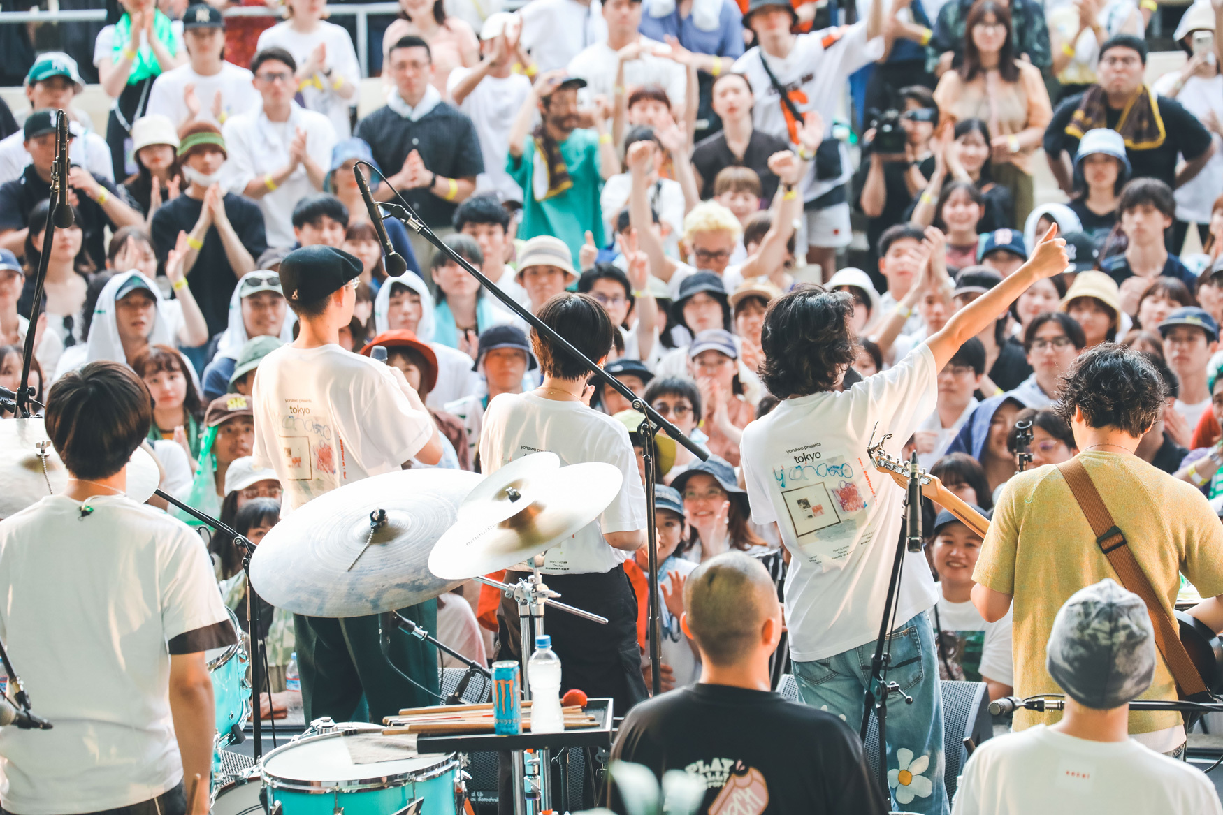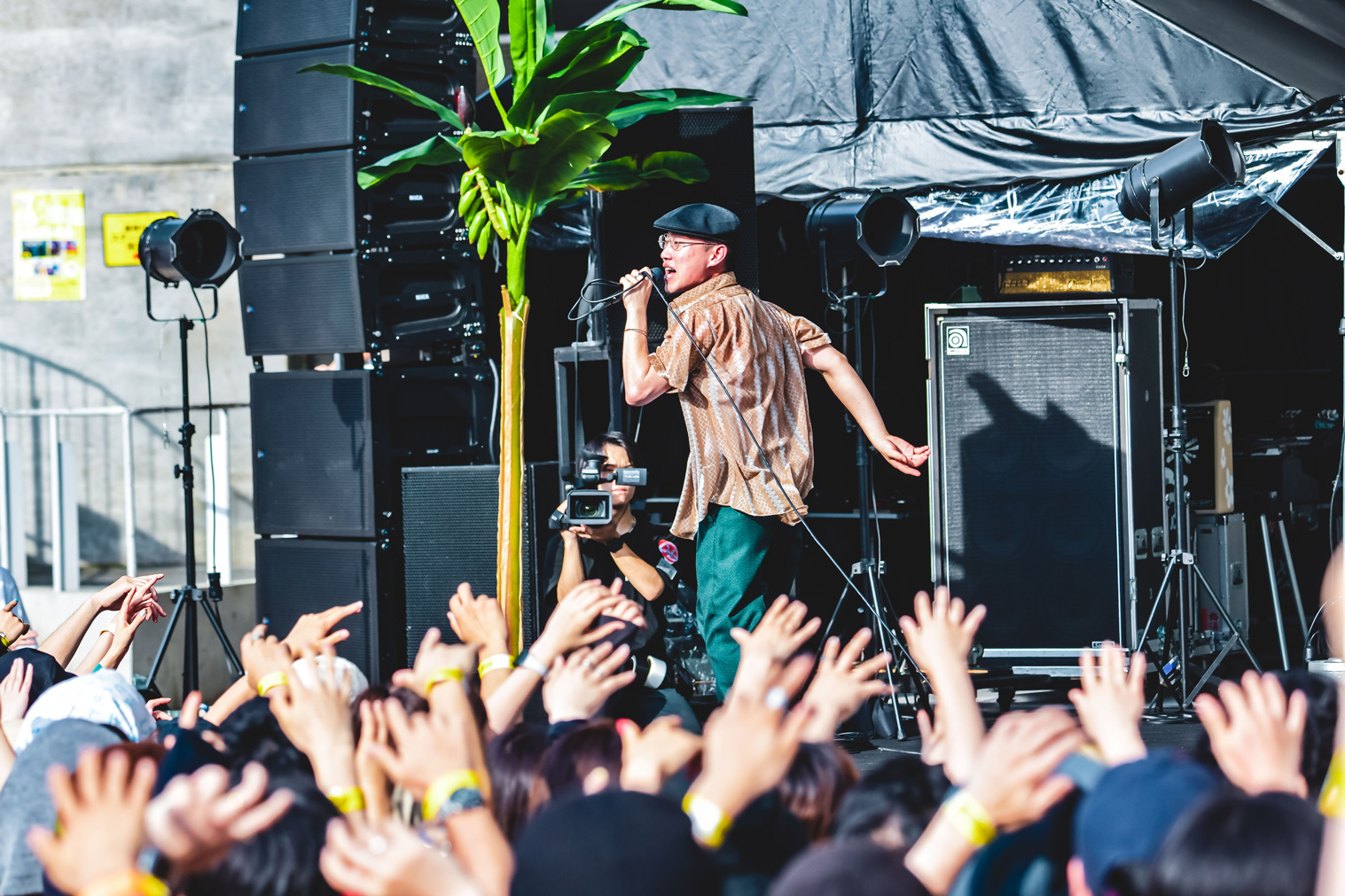 この日は雨や日差しの心配が軽減される屋根付きステージバック指定席も販売されており、ステージ後方まで360°お客さんが入るというスタイル。他にも18歳以下はお得になるU-18チケットが用意されていたりと、オーディエンスの過ごしやすさを考えた主催者の気持ちの表れだろう。