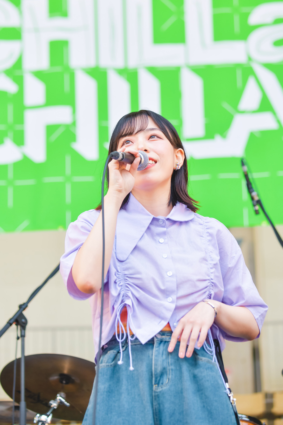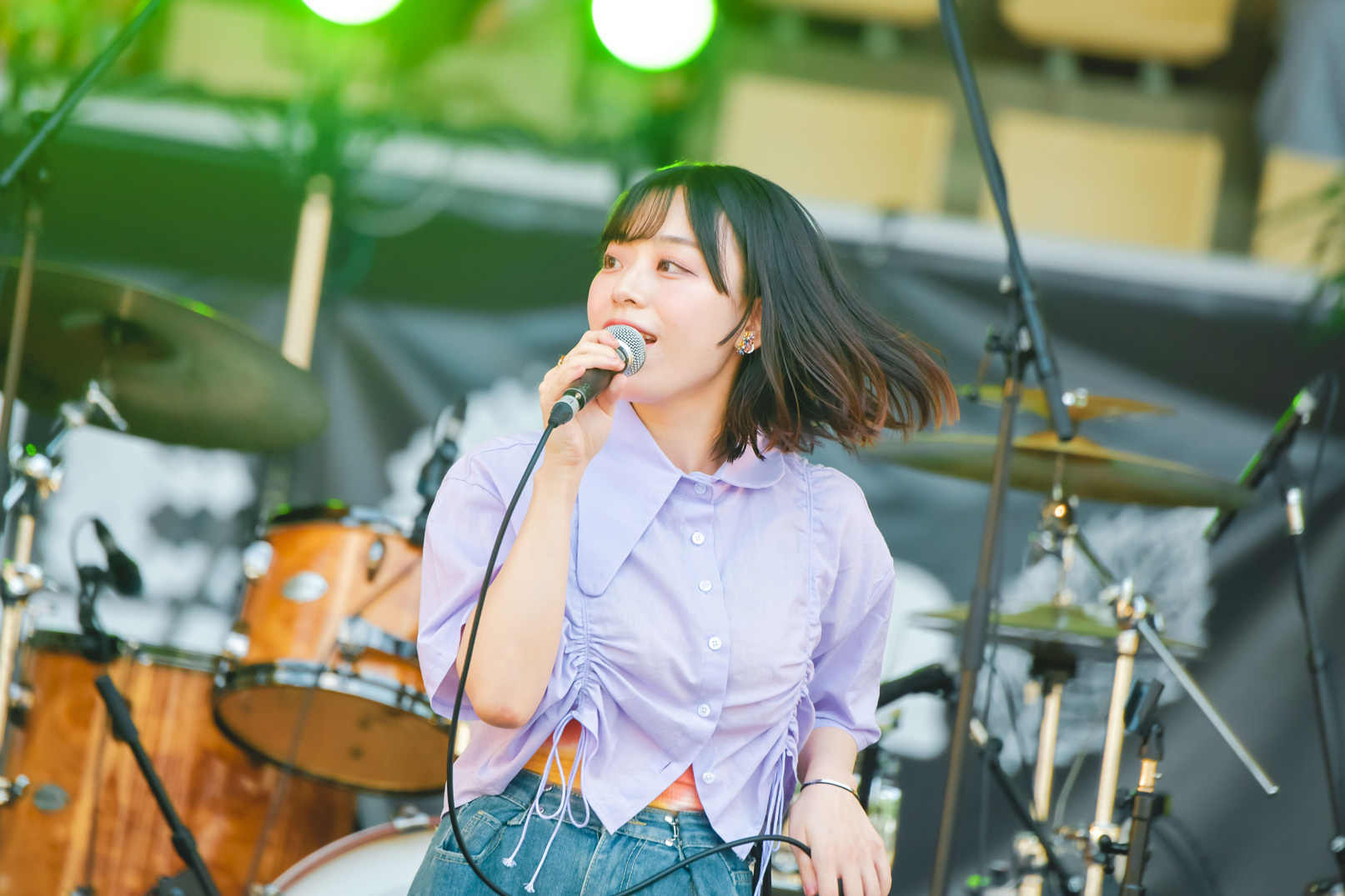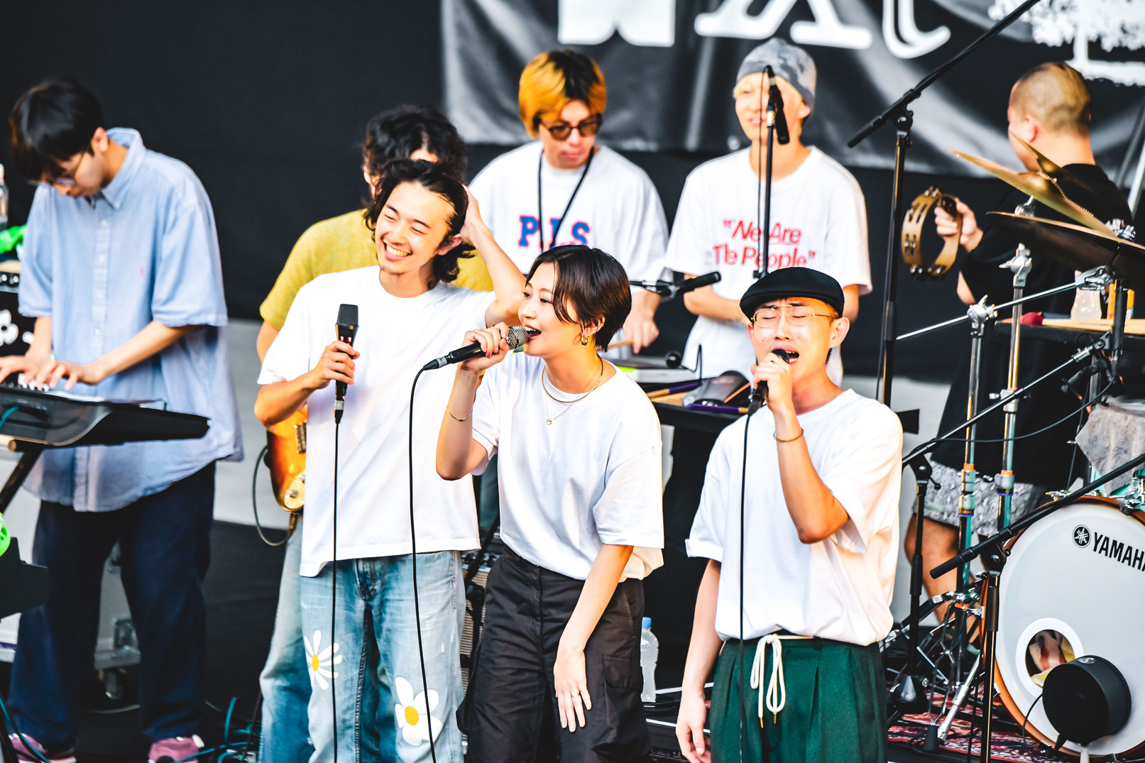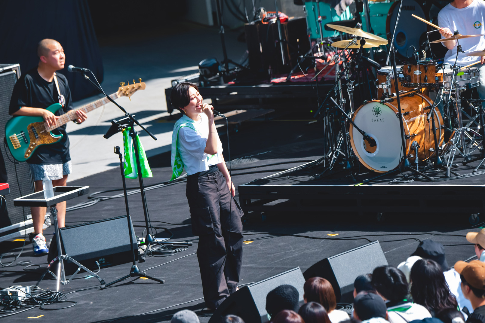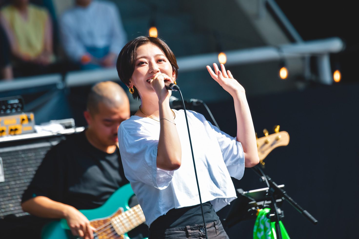 中盤は「Lazy river」、chelmicoのDJをつとめる%Cの楽曲で、BASIと鈴木がフューチャリングした「TIME IS OVER」、iriをフューチャリングした「じゃむ」、そしてSTUTSとSIKK-Oとのコラボ曲「Summer Situation」と夏にピッタリの楽曲を連投してぐんと気分を高め、暑さをも味方にする。鈴木はバックスタンド席にも手を振り、「野音でバンドでできてすごい嬉しいです」と感謝を述べて「Contact remix」をブルージーに響かせてライブを終えた。チャーミングでカッコ良く、ヘルシーなステージに元気をもらうことができた。