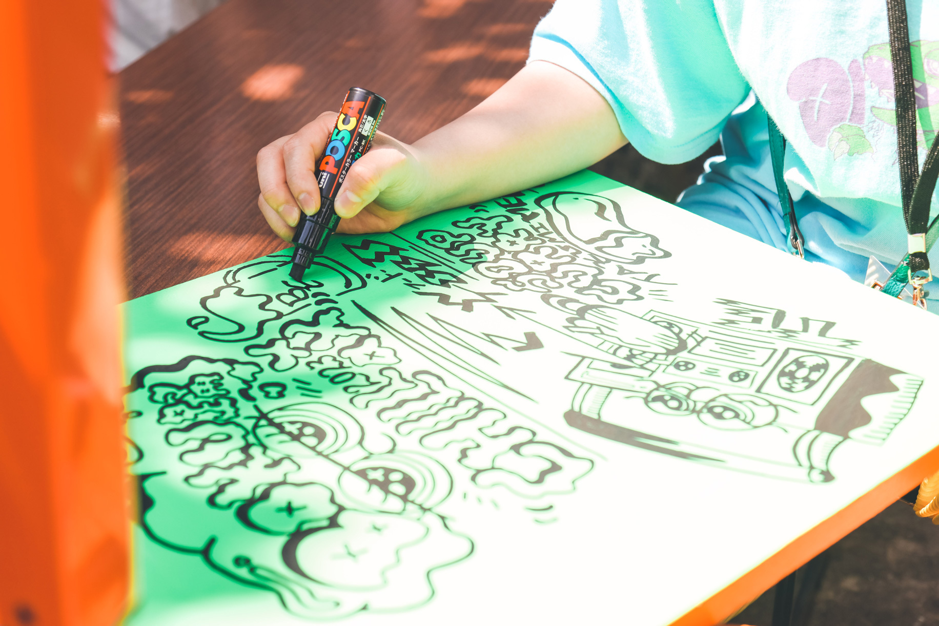 会場内には出店も。札幌スープカレーの「JACK」、立ち飲み屋の「THE MUSEN IN SHOCK」、焼肉「匠」がそれぞれ美味しそうなフードを出店していた。オフィシャルドリンクやグッズ販売のテントもあり、オフィシャルフェイスタオルの販売ブースの近くでは、出演者のイラストを手掛けたイラストレーター・RUGOSNによるライブペイントも実施。「ボク踊」は独特のゆるさと過ごしやすい雰囲気があり、みんなめいめいに好きなように開演までの時間を過ごしていた。