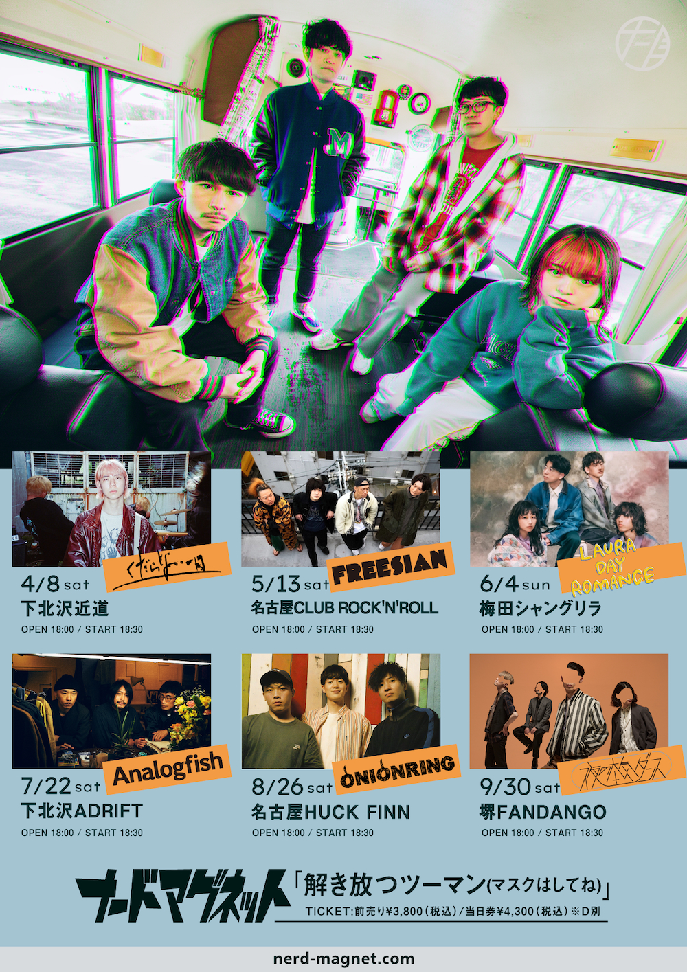ナードマグネットが東名阪にておこなてっている対バンツアー『解き放つツーマン(マスクはしてね)』のファイナル公演のゲストに、夜の本気ダンスが出演することが決定した。