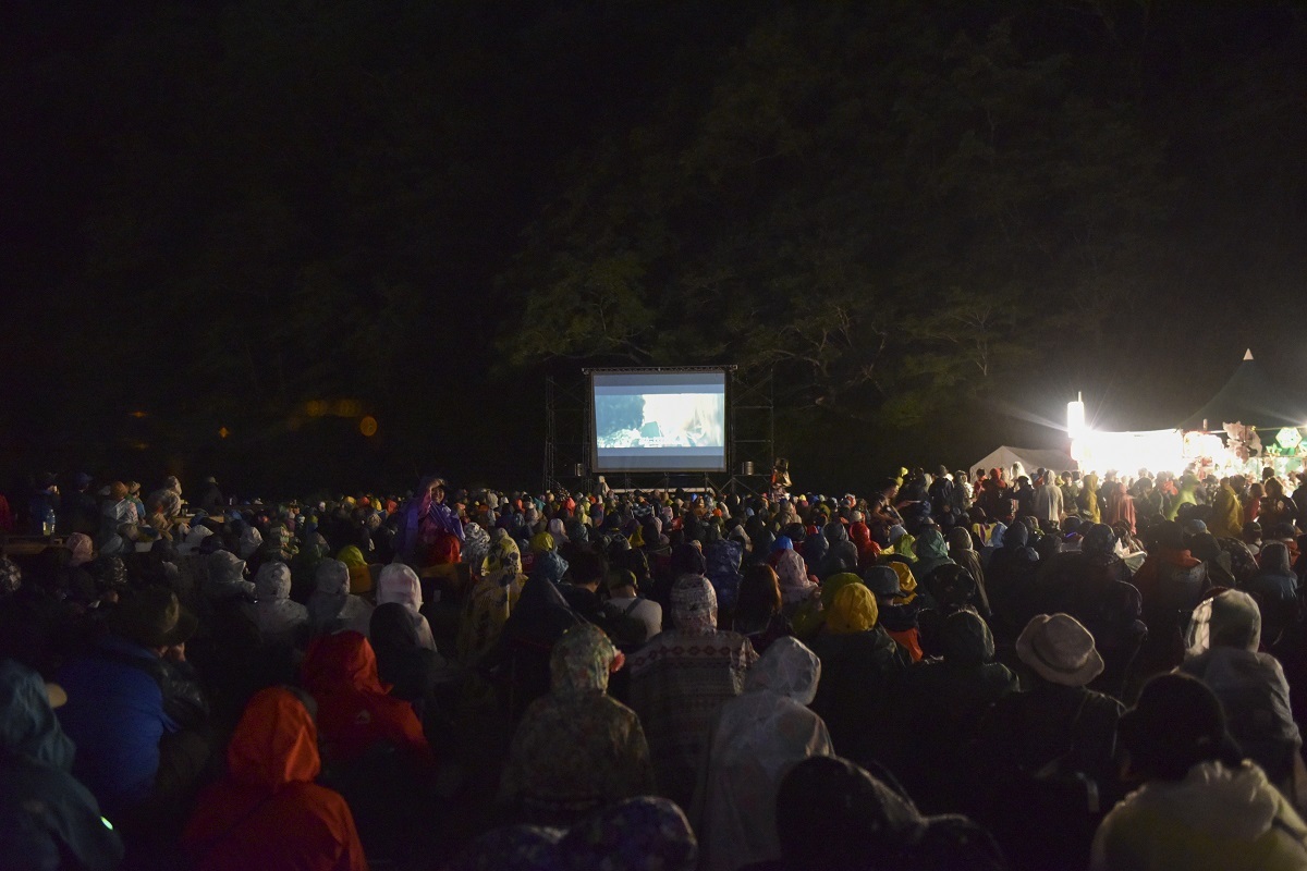 苗場の森で開催される夜の映画鑑賞会【アウトドアシアター】では、『フジロック』ならではの作品が毎回上映されている。今年の上映作品は、『YELLOW MAGIC ORCHESTRA live at FRF’11』『ザ・ユナイテッド・ステイツ vs. ビリー・ホリデイ』『男はつらいよ 寅次郎恋やつれ(シリーズ第13作)』『シェイン 世界が愛する厄介者のうた』の4作。上映場所は、川の近くにある「ところ天国」にて。