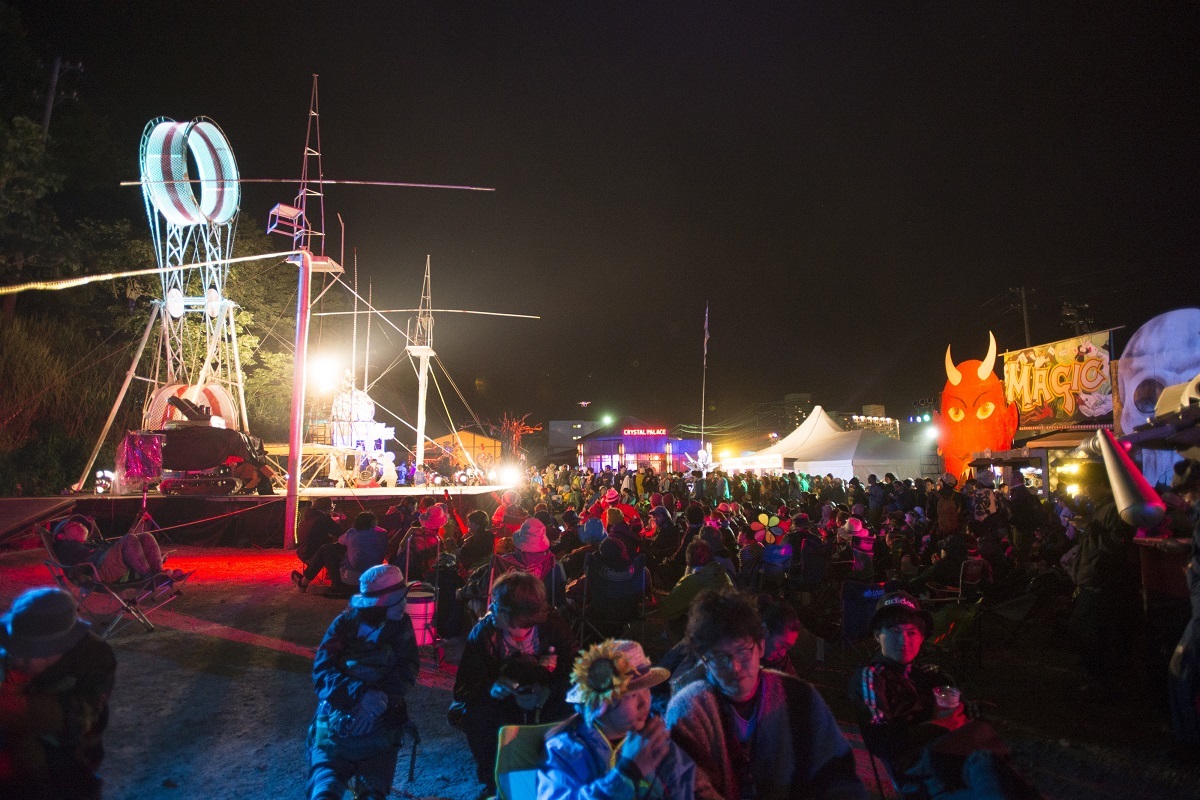 【クロワッサンサーカス】は楽団による生演奏と、綱渡り、ジャグリング、空中芸などで魅せるクオリティーの高いスキルを持つパフォーマーによる、言葉を使わないサーカスアクトとパントマイムのライブパフォーマンス。『フジロック』期間中の3日間、「Pyramid Garden」で毎日開催されるこの演目は、子どものみならず大人にも大人気だ。オリジナルサーカステントは直径20mの大きな円盤のように風にたなびきながら視界に現れ、夜は独特さが増した不思議な「Pyramid Garden」の世界へと見事に溶け込み、魅力的な時間を演出