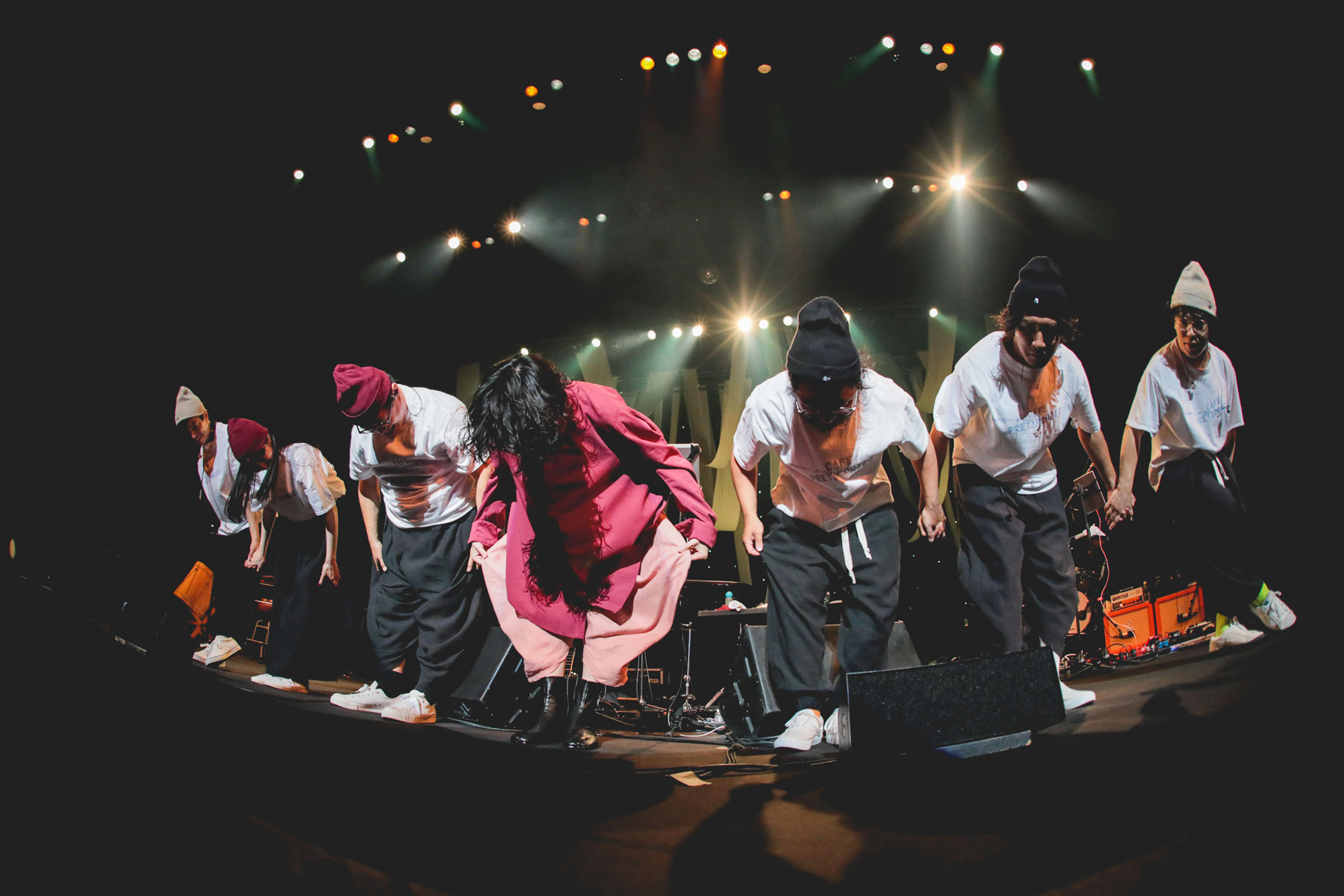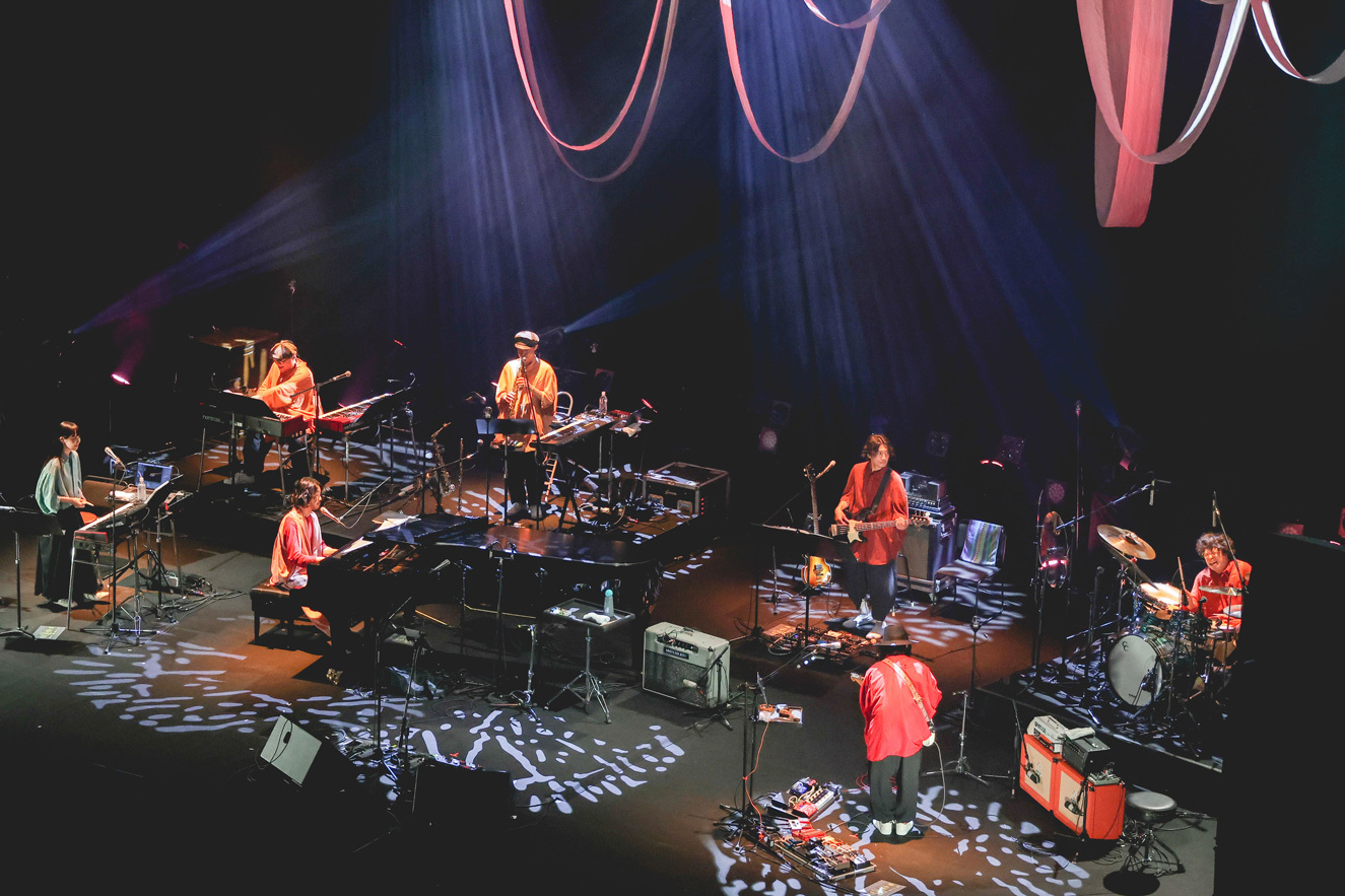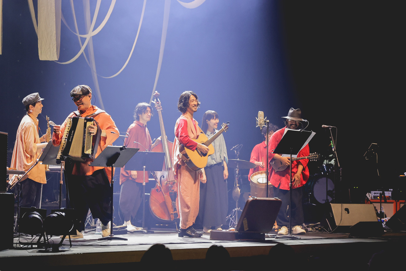 再び本編に戻ると、「VENUS」で大橋がロックなギターソロをエモーショナルに披露。「ミルクとシュガー」ではリズムに合わせてシェーカーを振った後に、チャーミングなパンチを繰り出したりと、今までにないエンターテインメントな面を次々と披露。大橋がバンジョーを持って始まった「Happy Trail」で武嶋のソプラノサックスがソウルフルに炸裂した後は、客電が灯された場内にドラマティックな「サクラ」が響き渡る。