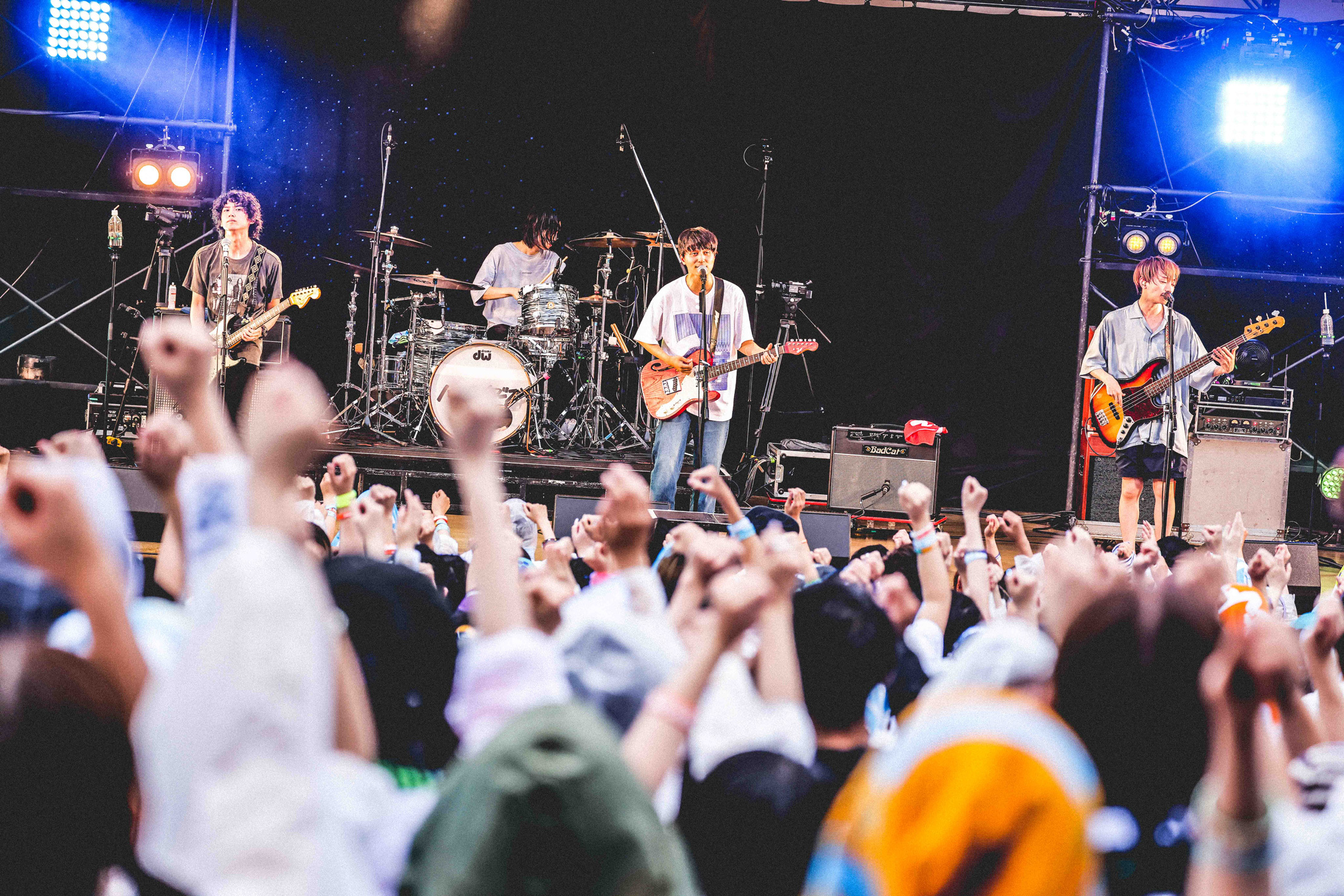 ここで、10月29日にハンブレッダーズが大阪城野音で初のワンマンライブを行うことがアナウンスされる。バンド14年目の最後のライブということで、メモリアルな日になりそうだ。コロナ明け2本目のライブが野音で、有観客だったもののマスク着用&声出しNGで悲しかったと話したムツムロ。「やっと今日マスクを外してる人がいて、声も出せる状況で野音でやれてるのが嬉しくて仕方ないです。コロナで失ったものもいっぱいあったけど、得たものもいっぱいあったんで、俺たちはずっとロックバンドをやっていくという覚悟がより強くできました」と一気に語り、最後に「銀河高速」をプレイ。彼ら自身が辿ってきた道程と決意が詰め込まれた楽曲を爽やかに奏で、ハンブレッダーズらしいステージでライブを終えた。14年のキャリアを重ねてもなお、フレッシュさがあるのも彼らの魅力。堂々と手を振ってステージを去るメンバーの姿が眩しい光を放っていた。